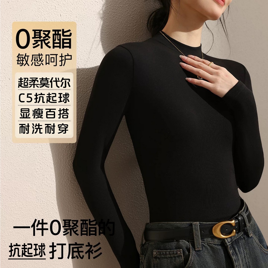 KolaKola女装打底衫精品莫代尔半高领小立领修身保暖女士长袖秋冬