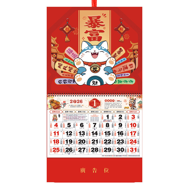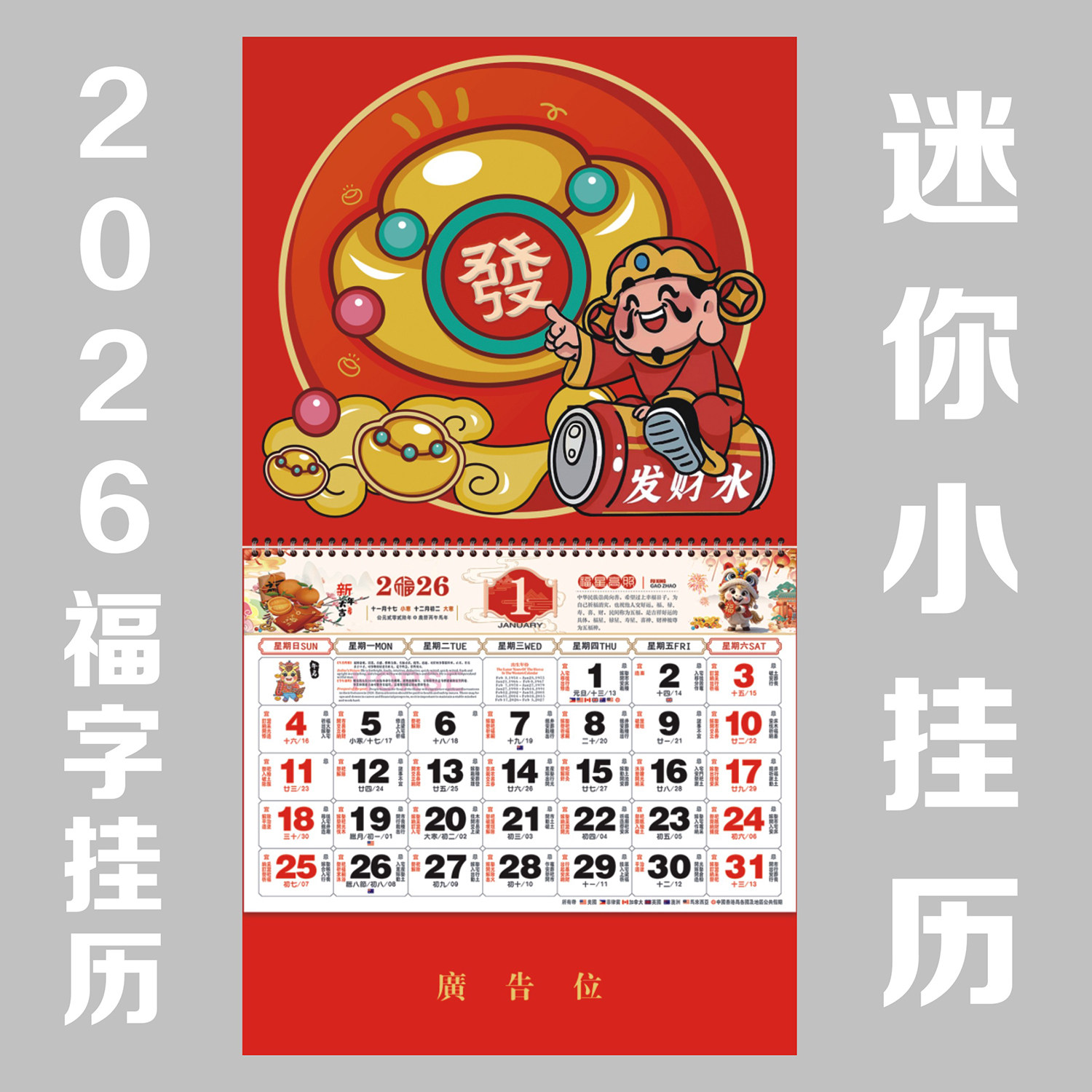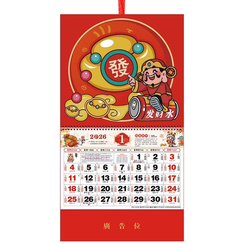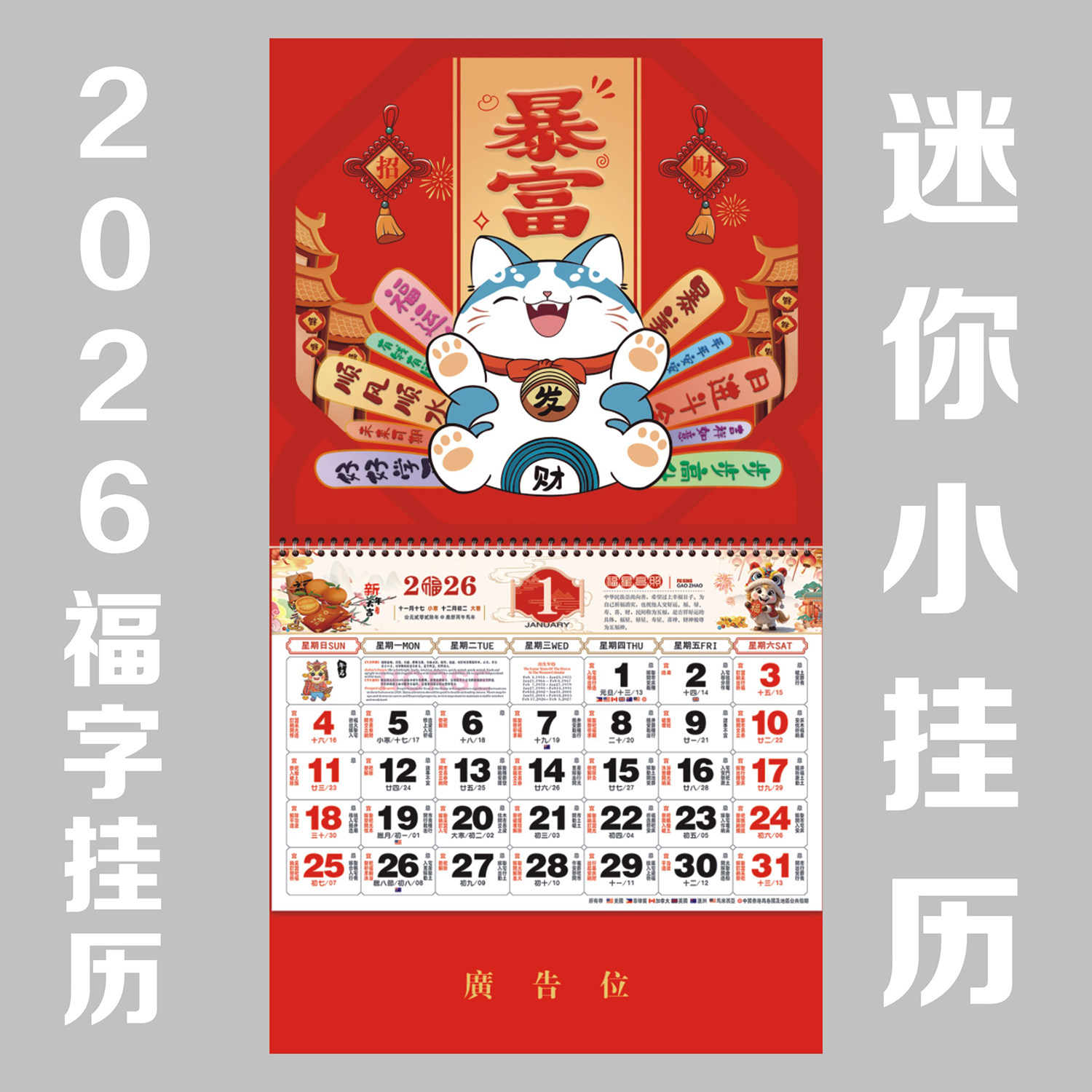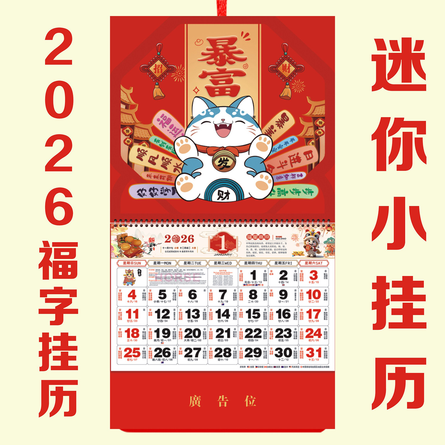 2026小号福字吊牌美国马来西亚日历马年迷你挂历定制月历外贸定做