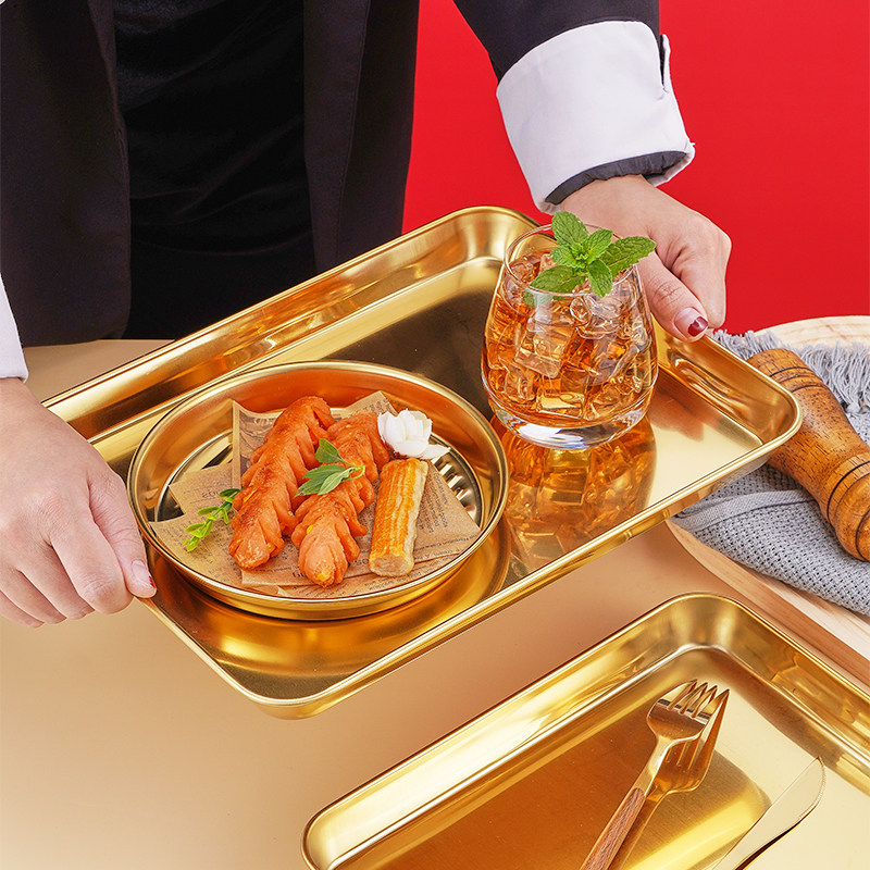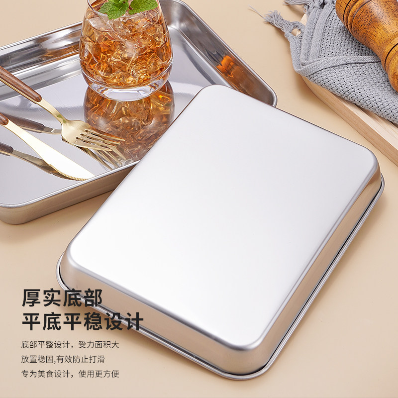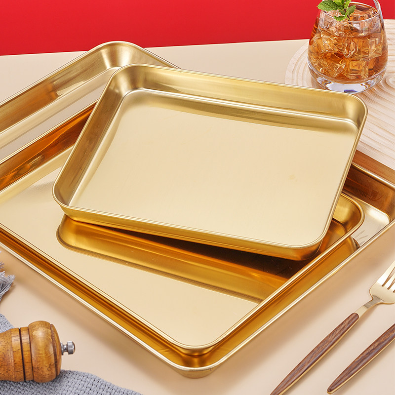 家用肠粉专用蒸盘长方形不锈钢金色盘子平底托盘凉皮粉盘工具套装