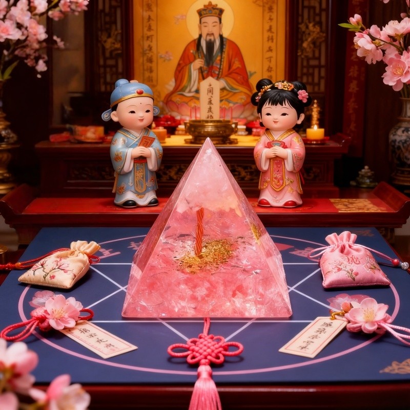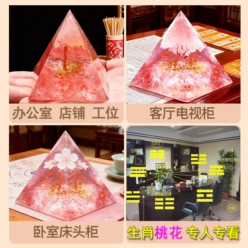 新中式水晶金字塔摆件桃花位摆件国学装饰品家居摆设桌面装饰品