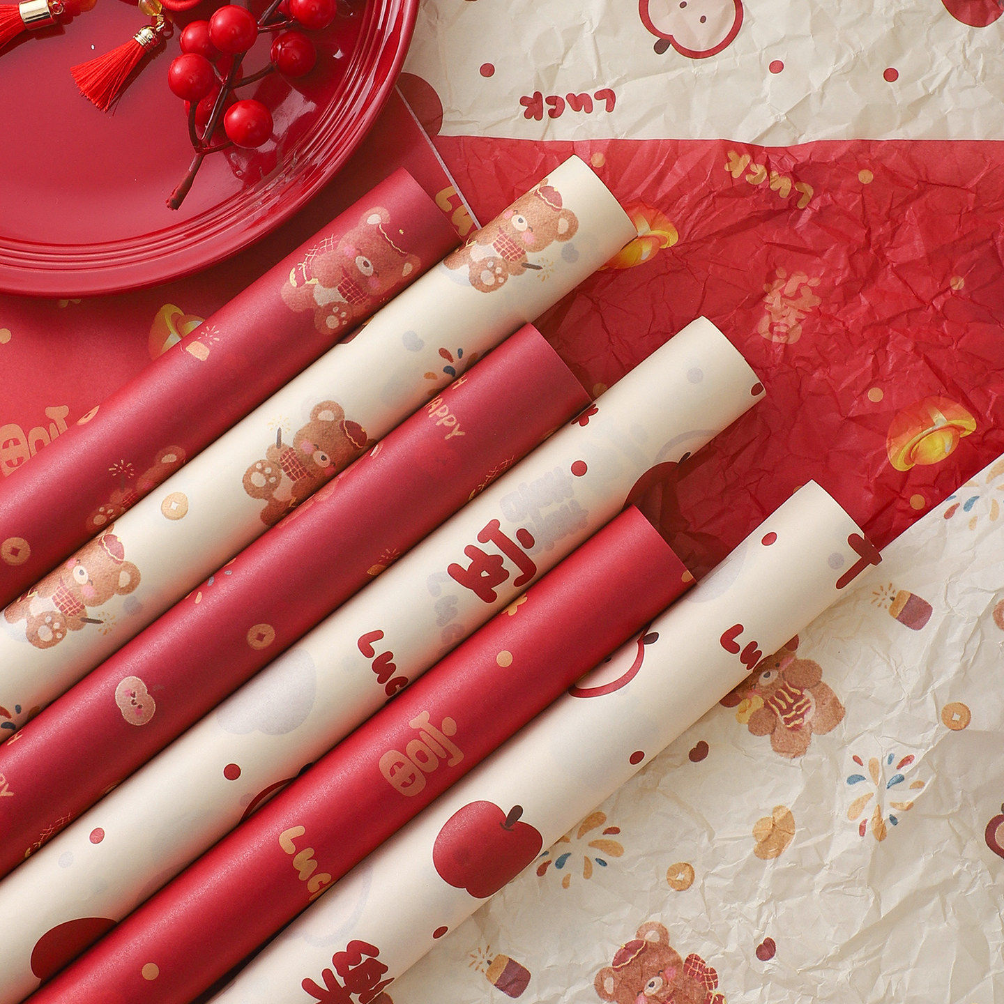 2026马年新年红色喜庆印花手揉加厚雪梨纸鲜花内衬包花纸花艺材料