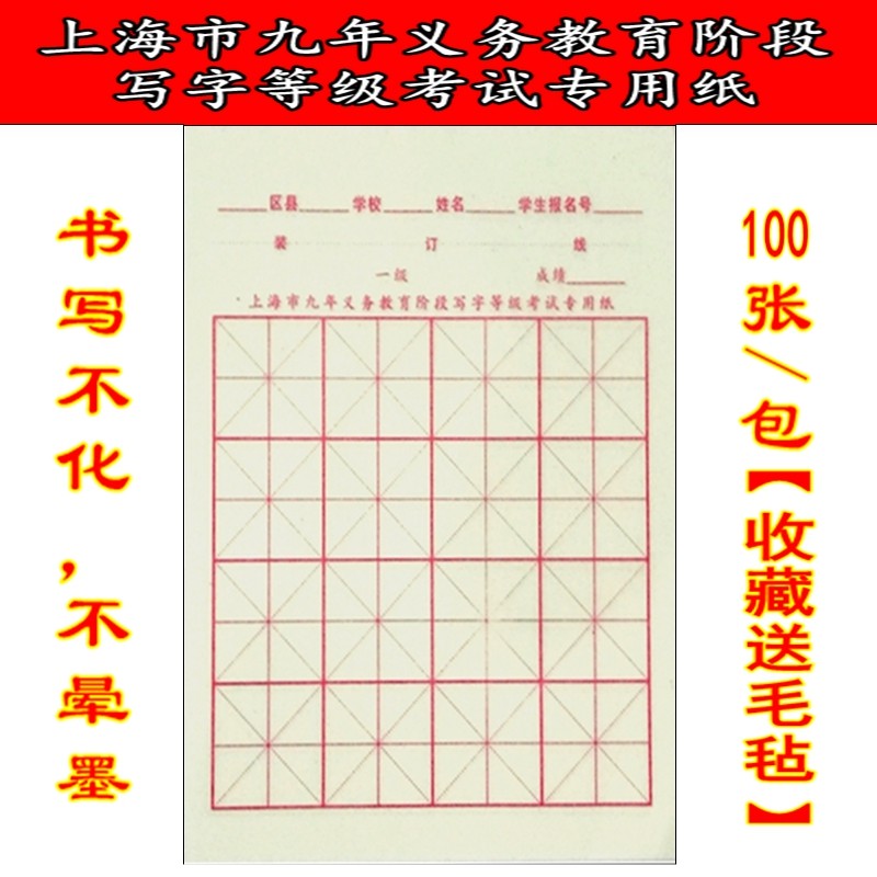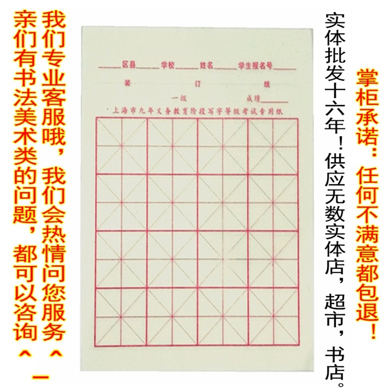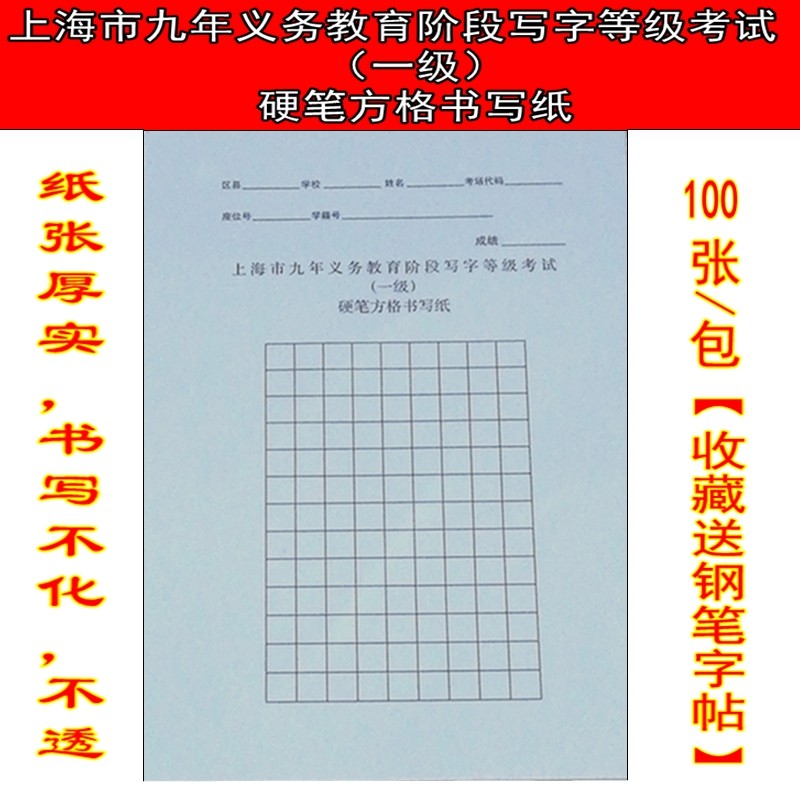 上海市九年义务教育阶段写字等级考试专用纸一级硬笔方格书写纸