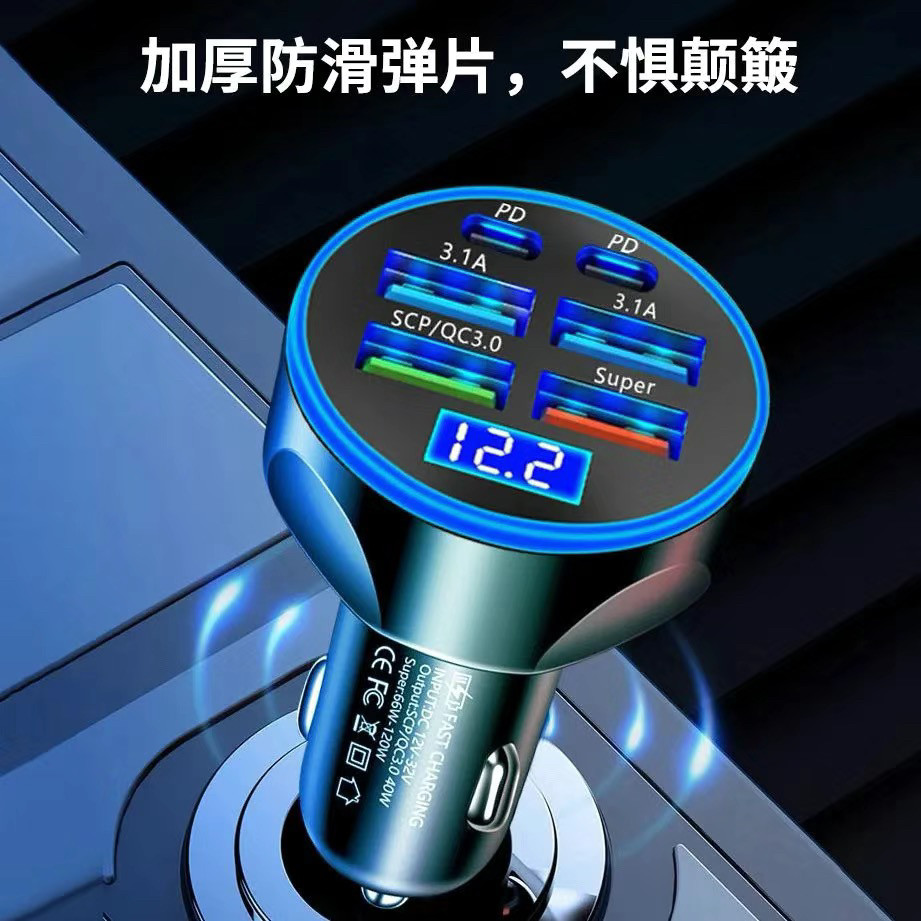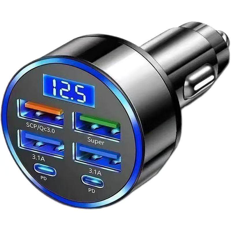 车载快充充电器超级快充汽车点烟器一分六转换车充USB多口闪充头