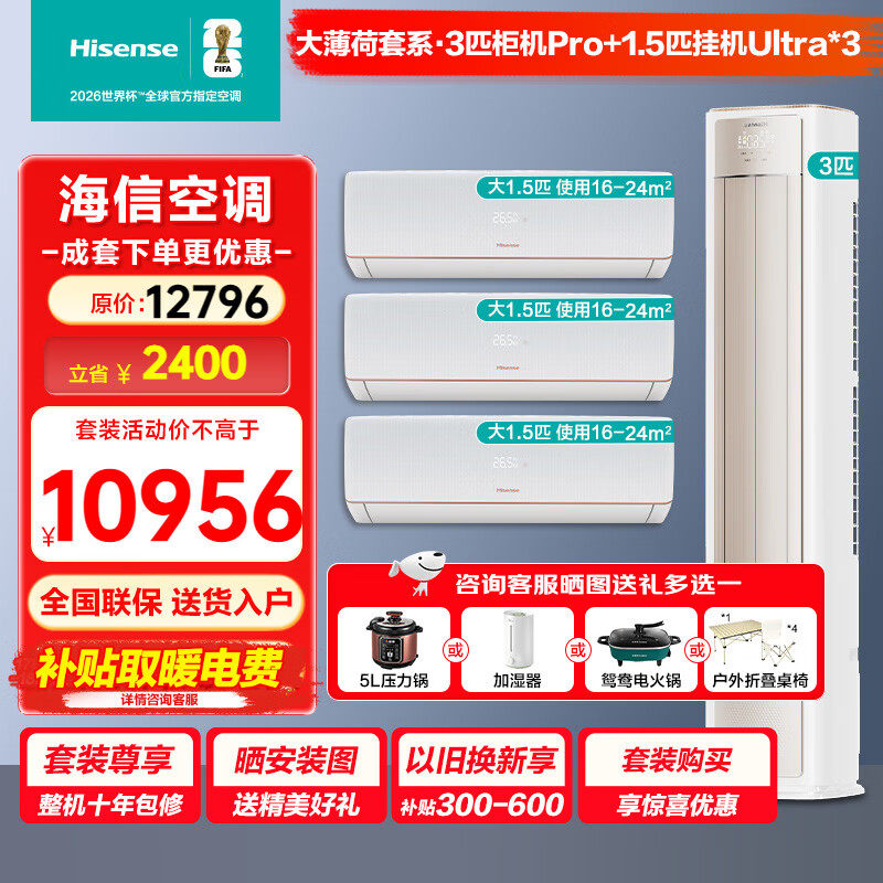 海信大薄荷空调套装家用三室一厅Ultra+大1.5匹3P柜挂机新一级能