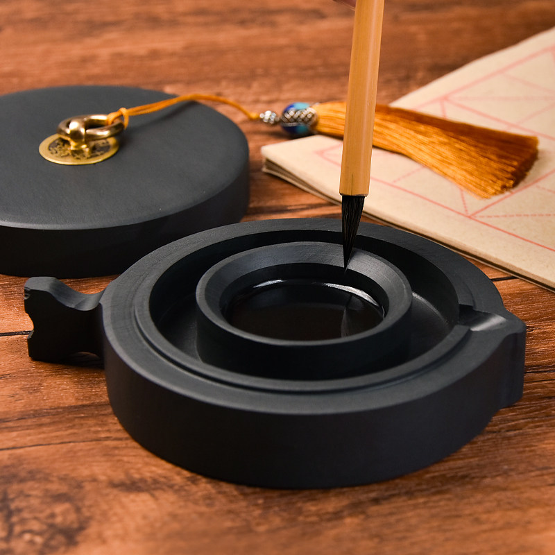 成竹堂火锅砚台带盖书法专用多功能墨台天然原石石料初学者练毛笔字可磨墨研墨墨池墨汁防蒸发不干墨保湿墨盒