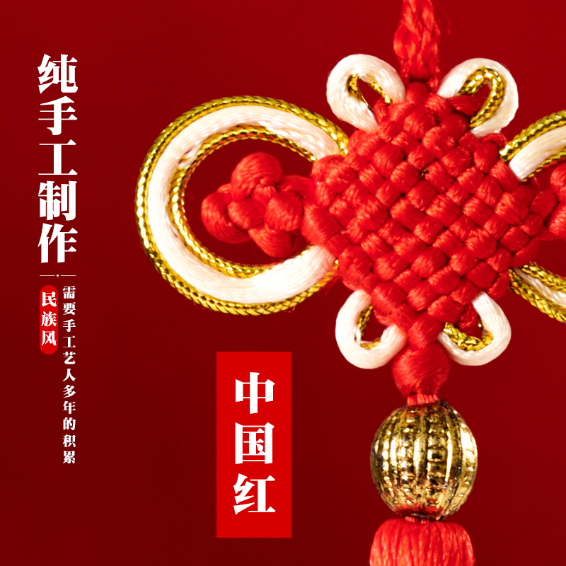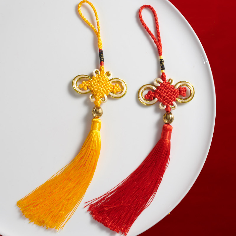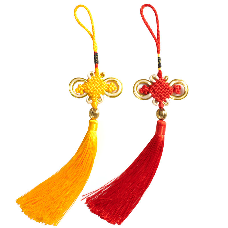 中国结挂件小号黄色大红色中国结绳装饰流苏穗子特色手工艺品吊坠