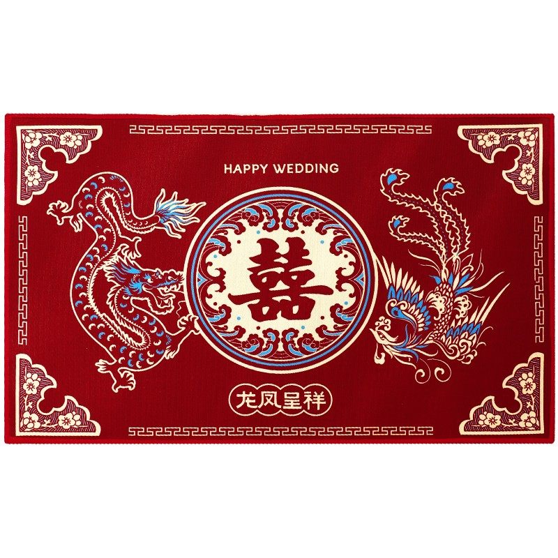结婚床边地垫婚礼喜庆装饰红色地毯婚房装饰布置入户门脚垫门垫