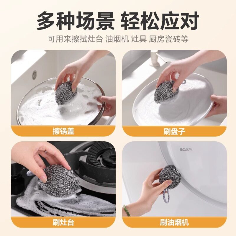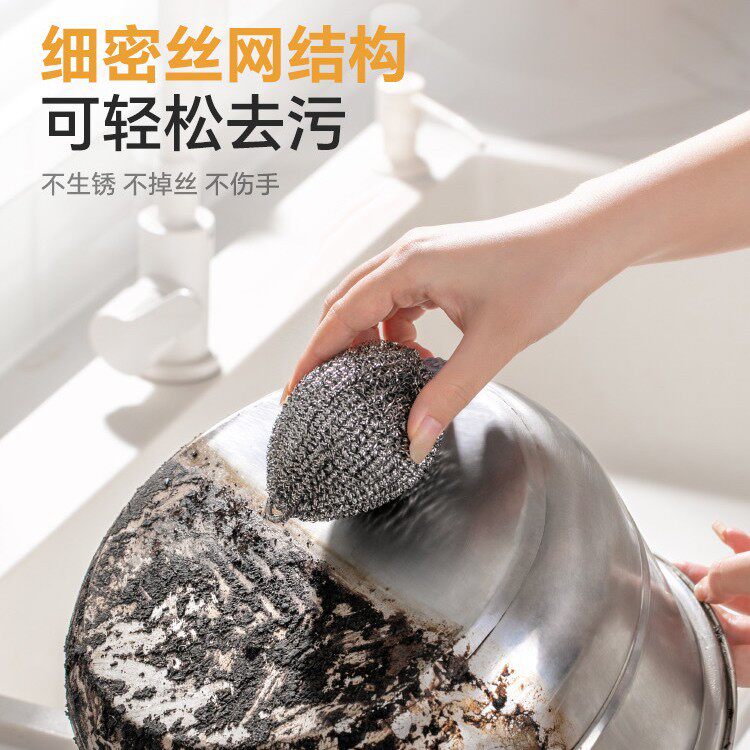 钢丝球自带挂绳不锈钢清洁球不掉丝不生锈家用厨房刷铁锅洗碗神器