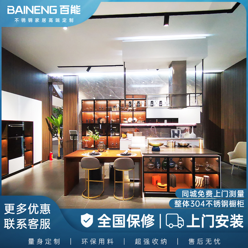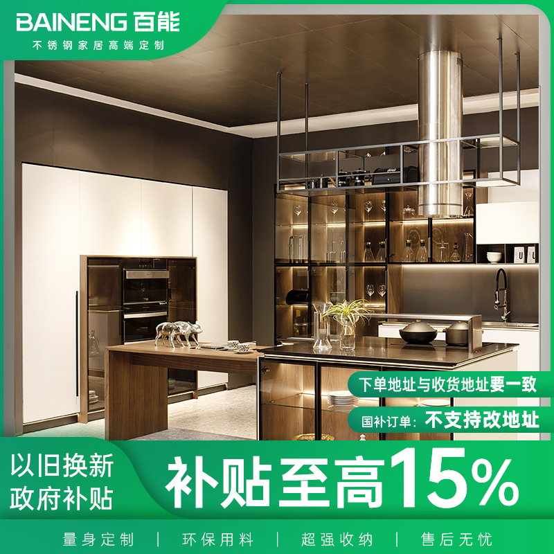 百能【国补套餐】整体定制不锈钢家用橱柜简约风格厨房全屋定制