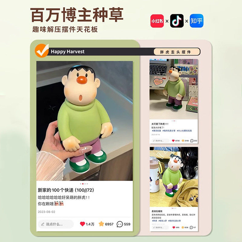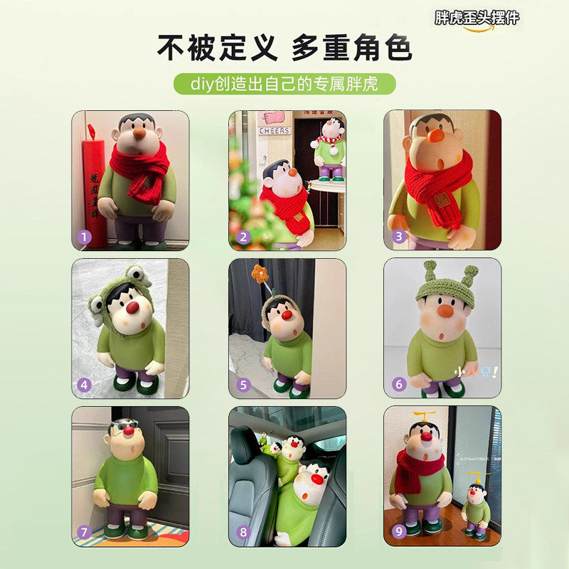 歪头胖虎摆件桌面玄关酒柜客厅电视柜装饰轻奢高级感车尾饰品手办