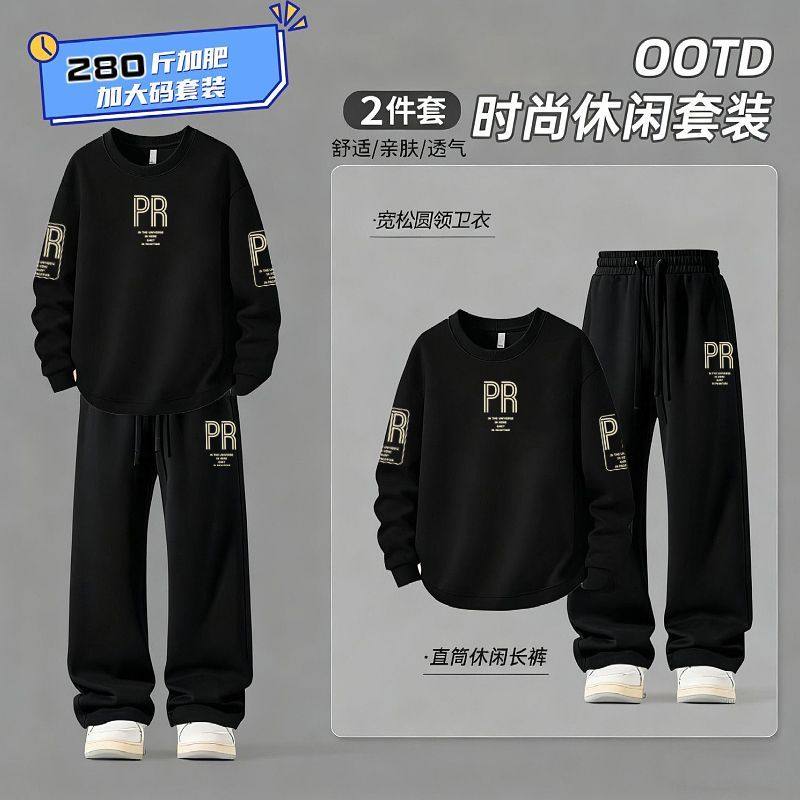 男士加绒加厚秋冬款卫衣卫裤运动服套装胖子加肥加大休闲两件套潮