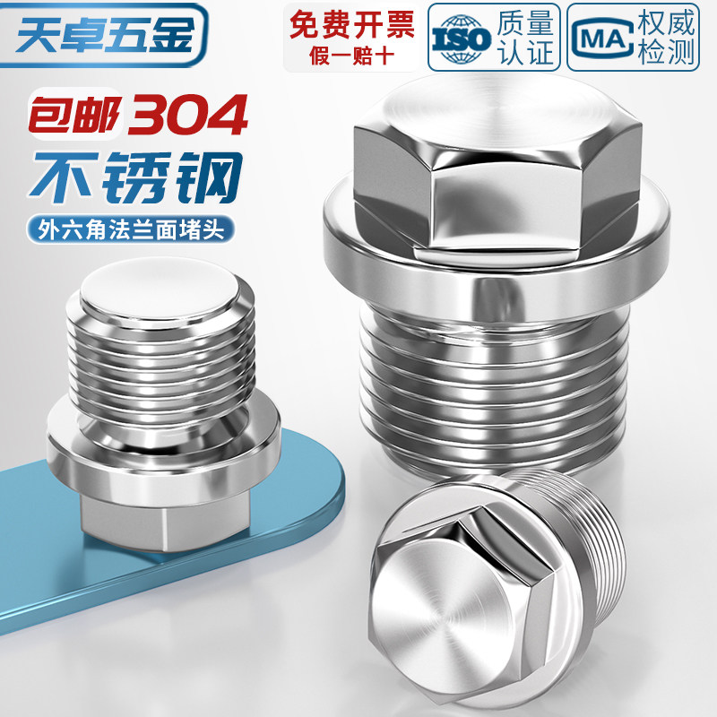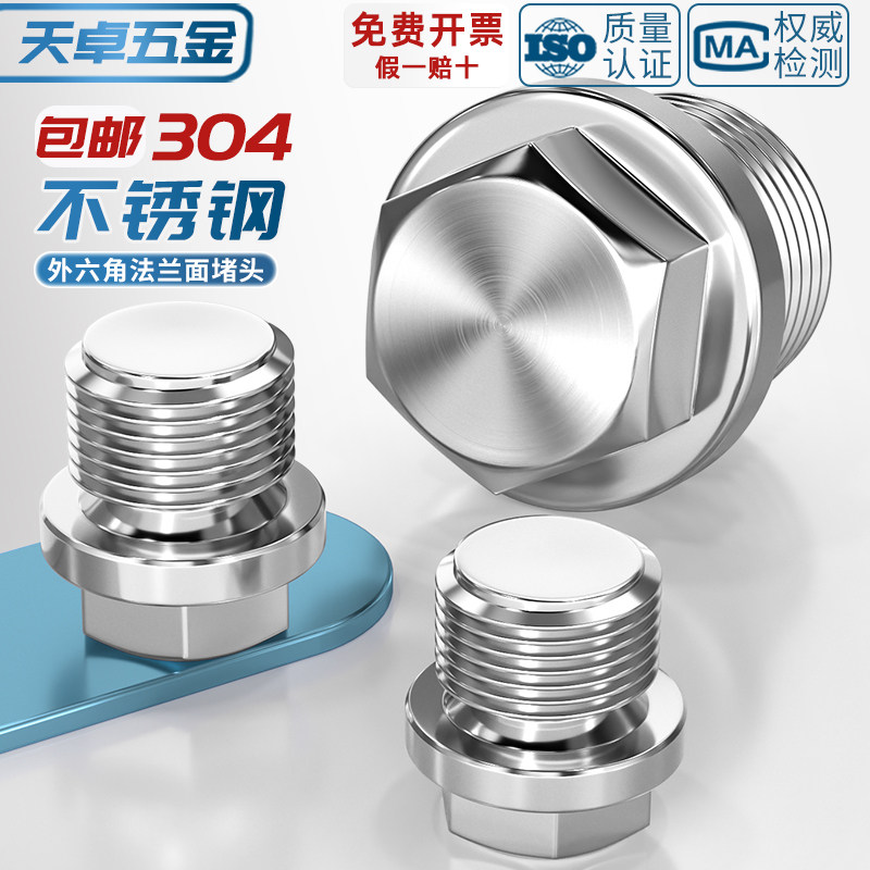 304不锈钢外六角法兰面堵头带边管堵油塞闷头水管公制英制2分4分
