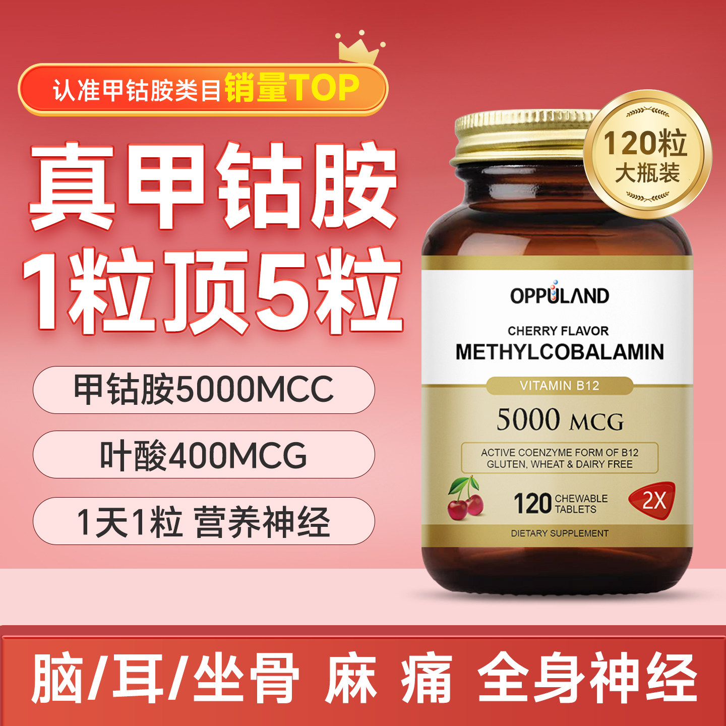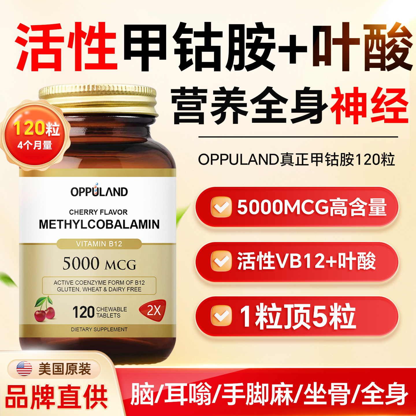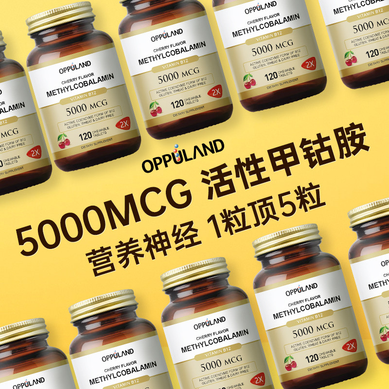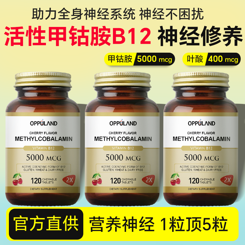 OPPULAND甲钴胺营养修复神经维生素b12进口活性叶酸片正品官方b族