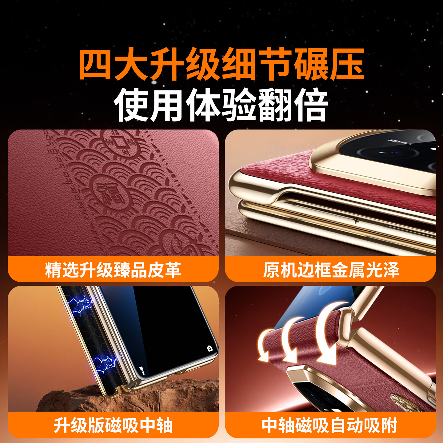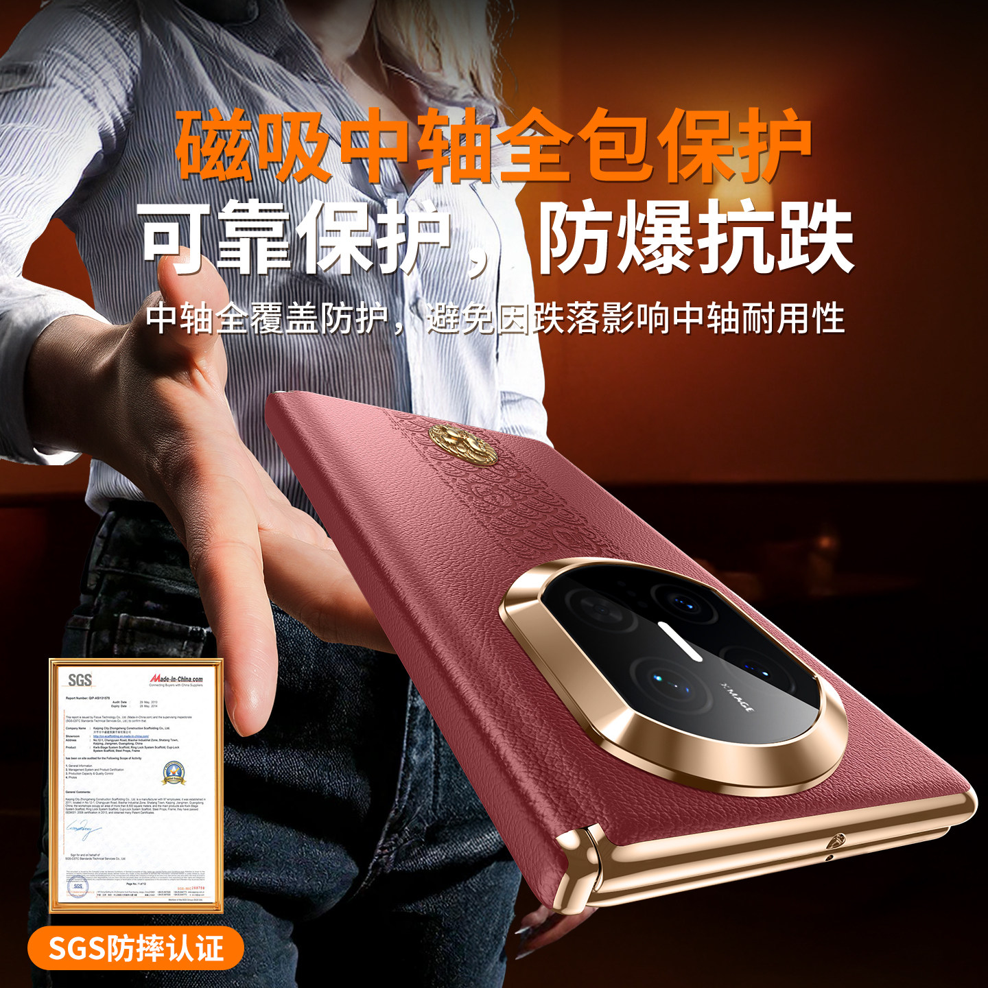 顺丰适用华为Matex7手机壳马年新款matex6典藏版鎏金马上有福保护套x5高级真皮感中轴折叠屏X3超薄全包防摔外