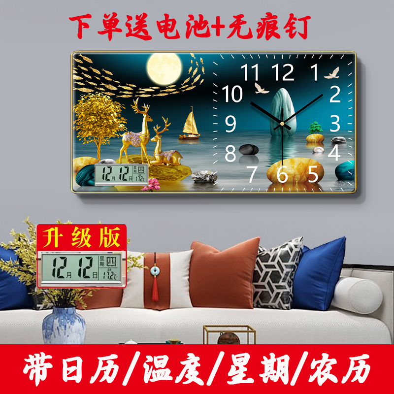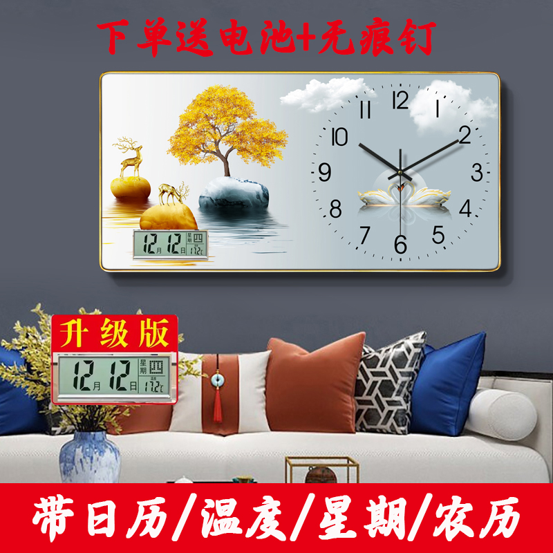 客厅多功能万年历钟表家用餐厅日历画挂钟客厅2025新款温度石英钟