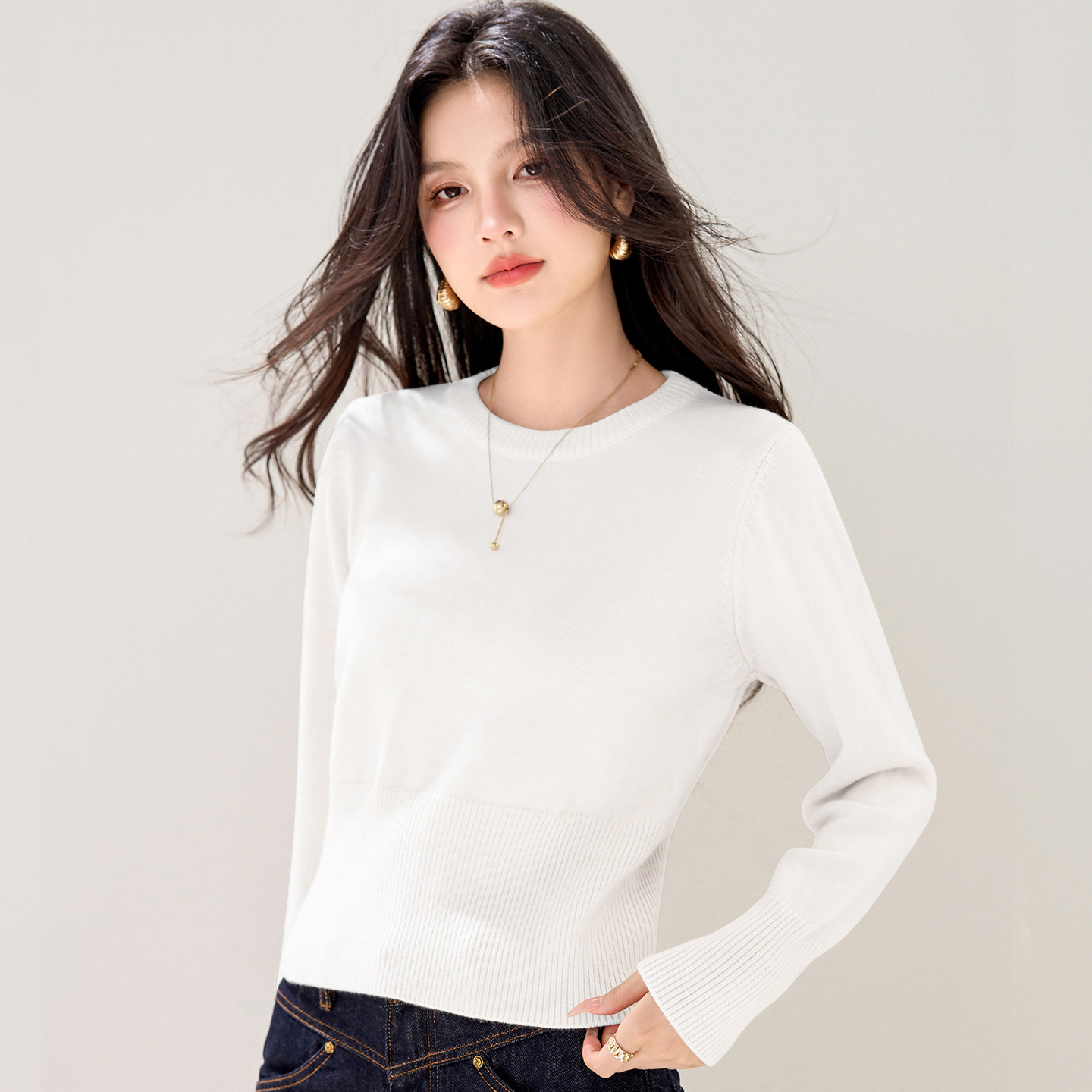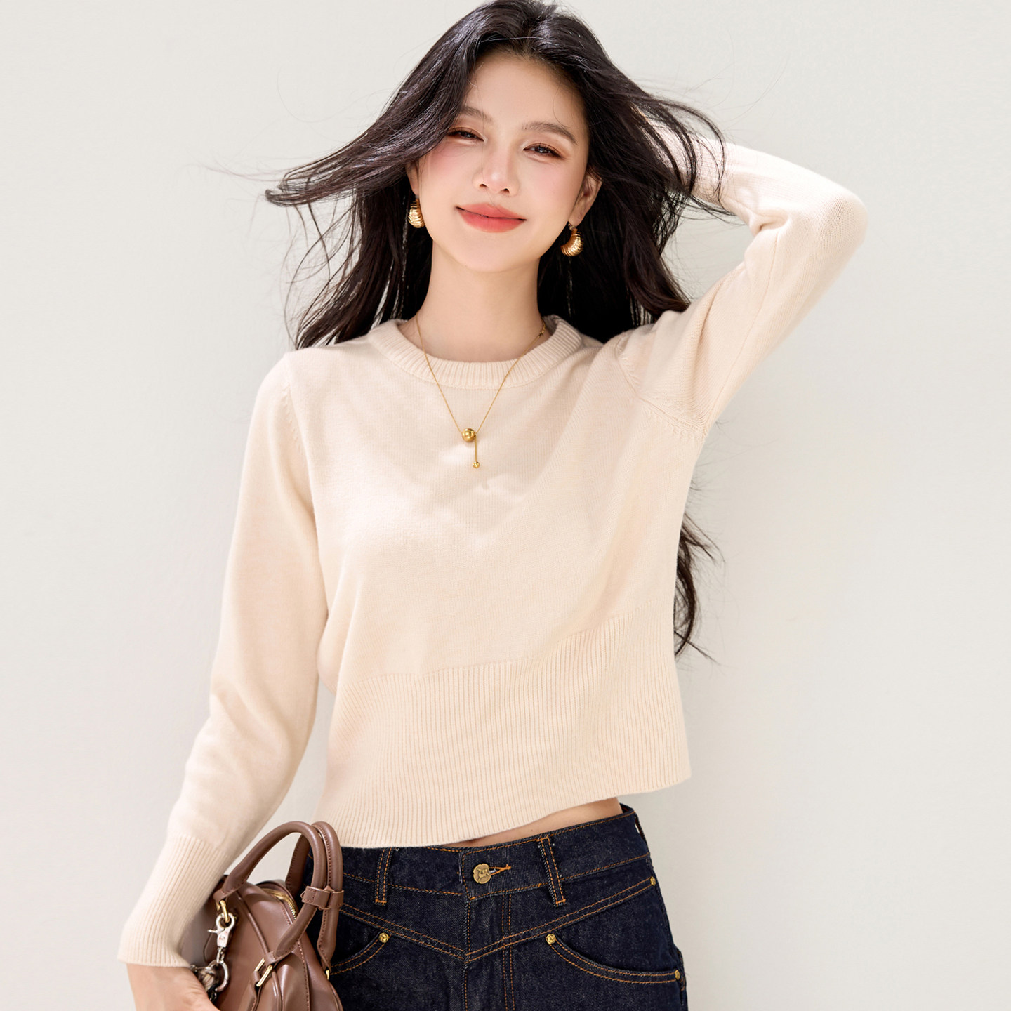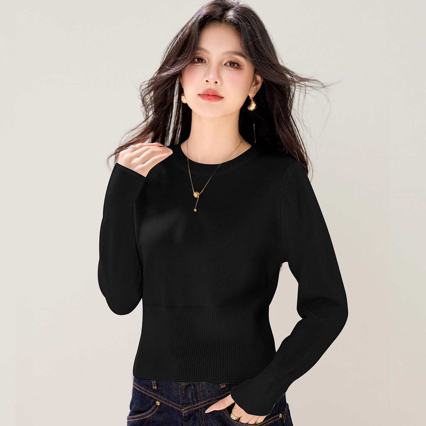 短款女士毛衣秋冬高级感加厚针织衫修身内搭打底衫小个子收腰上衣