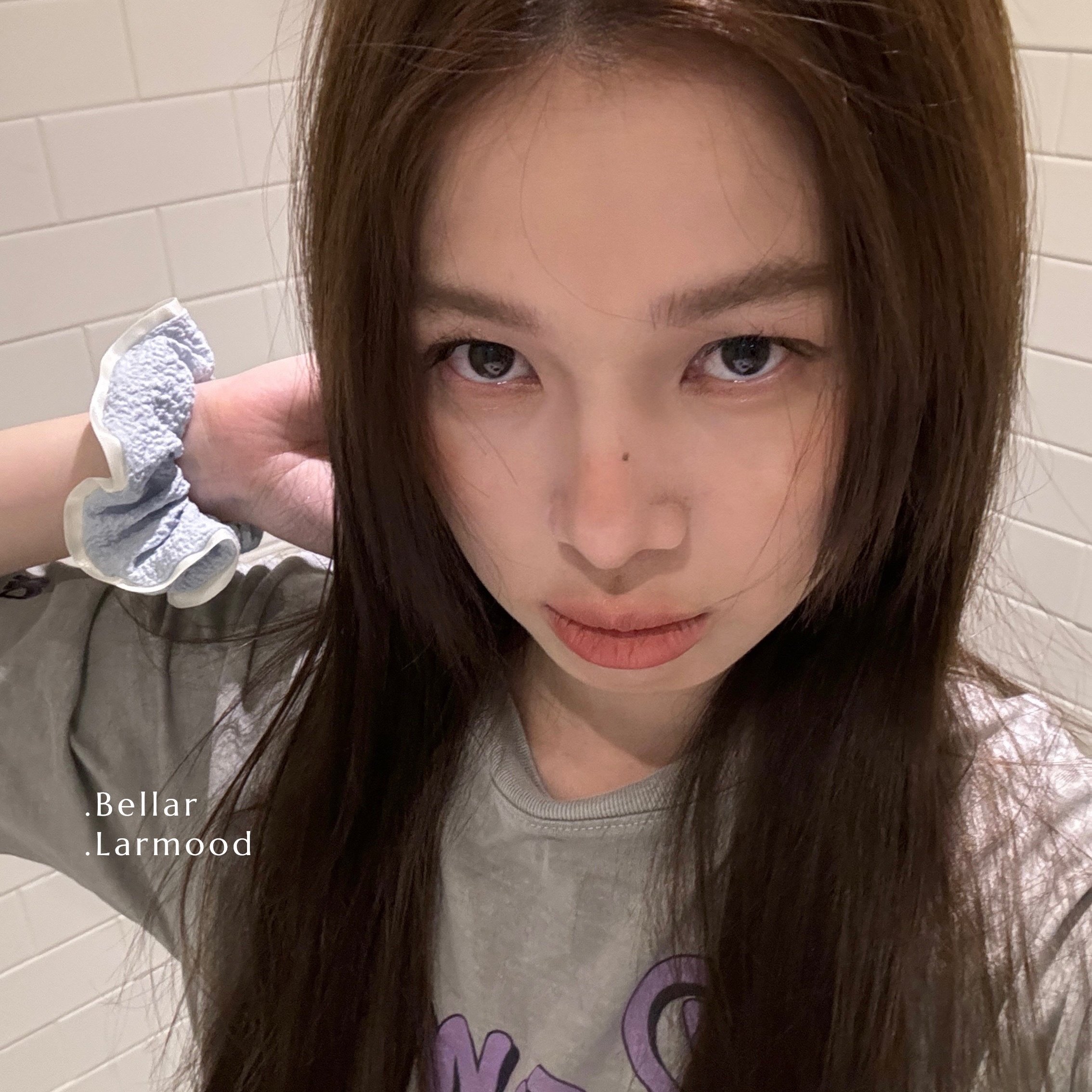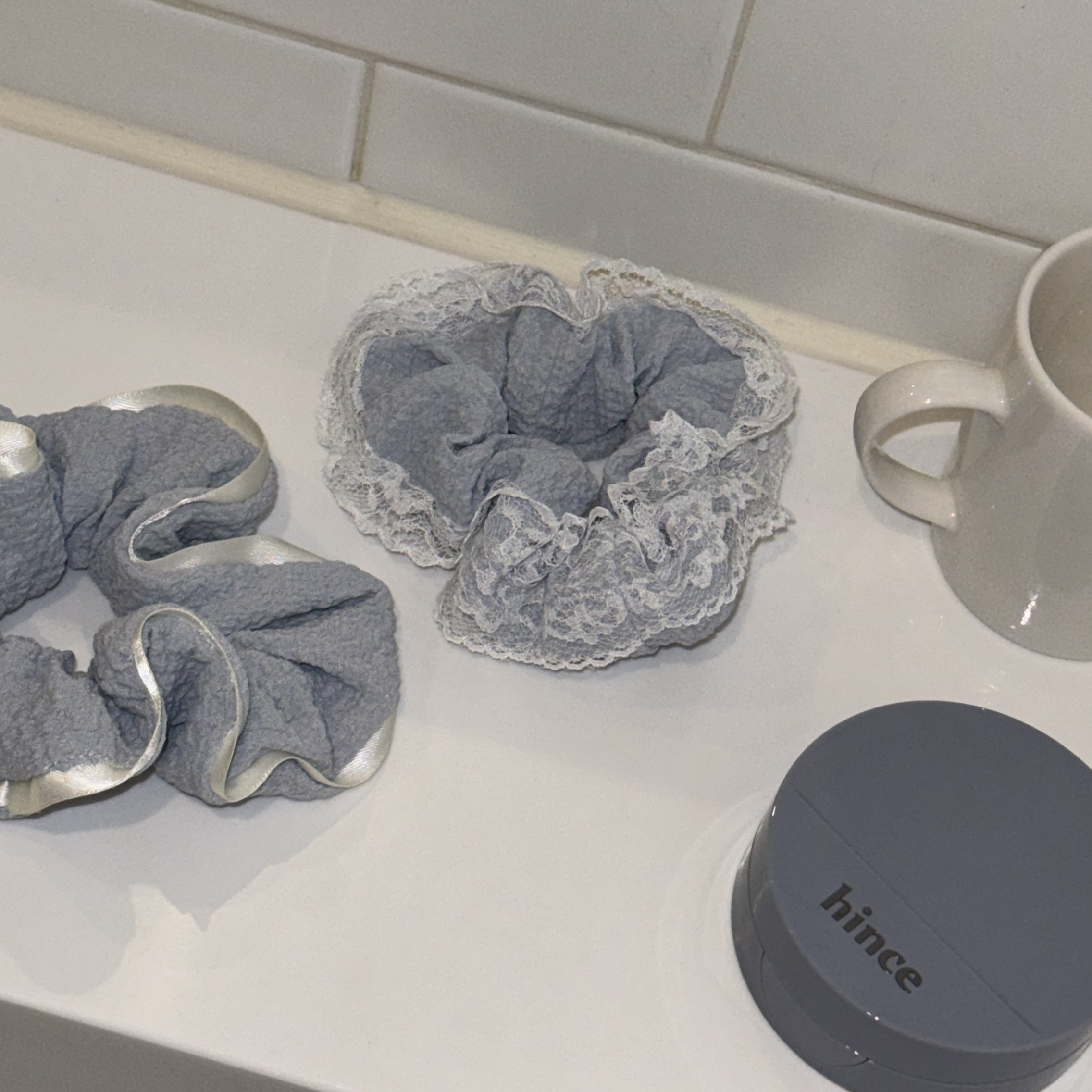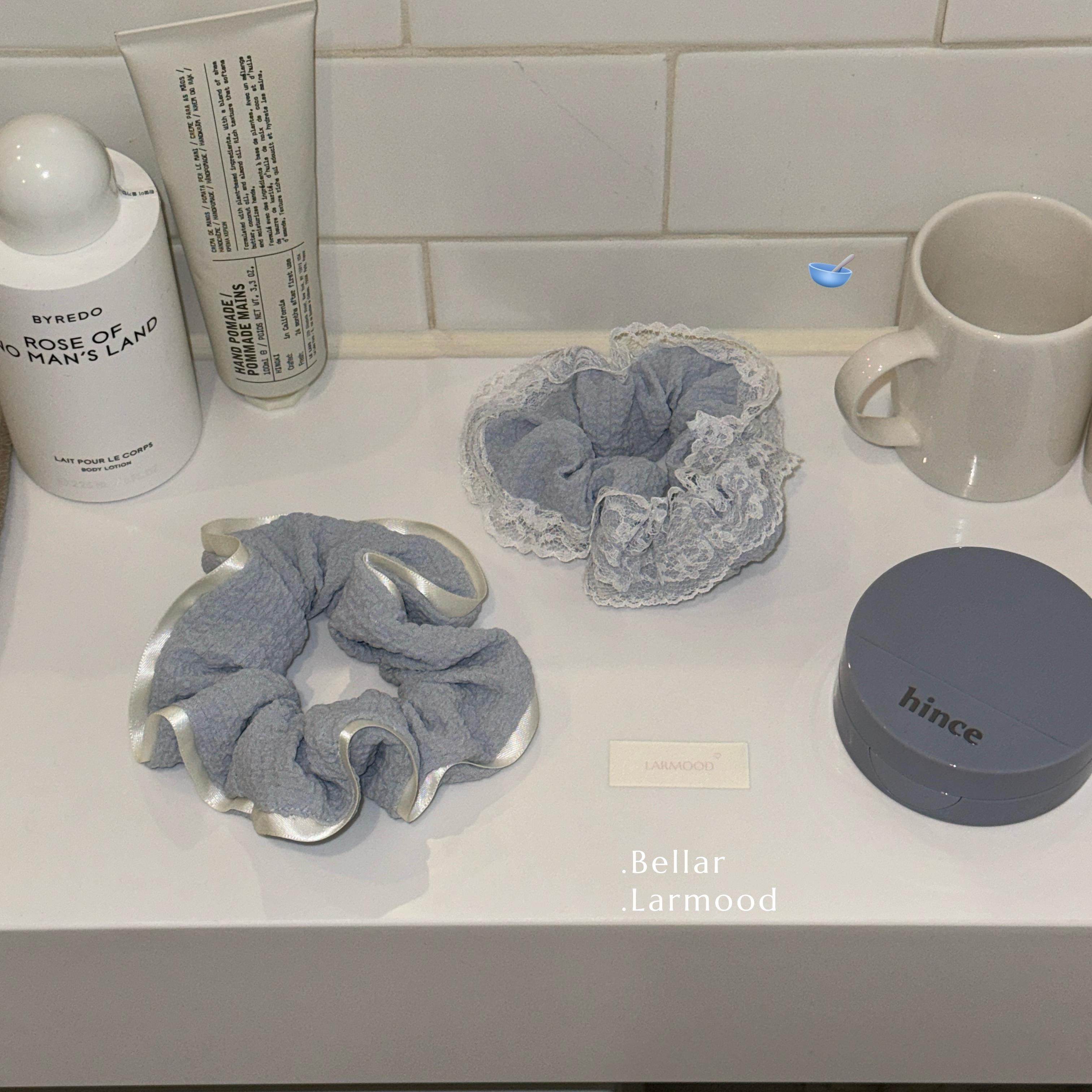 Bellar / larmood Babyblue lace 泡泡褶皱蕾丝缎带 少女奶蓝发圈