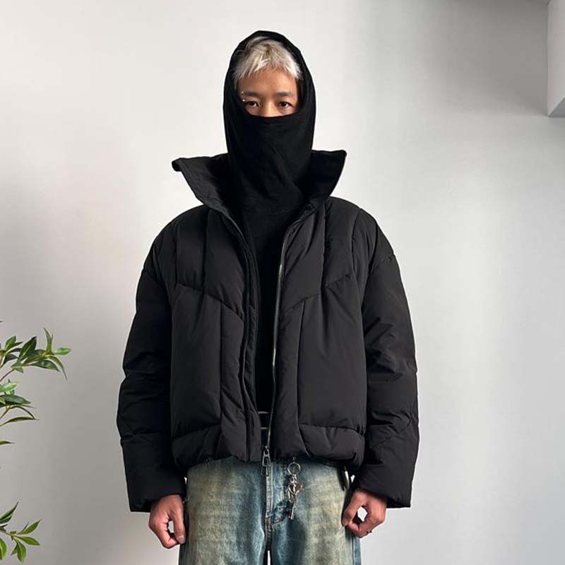 NOWBAU国潮机能机甲结构短款廓形羽绒服夹克90白鸭绒厚款保暖棉服