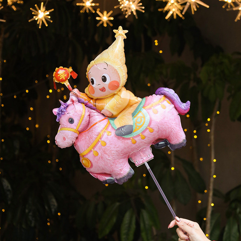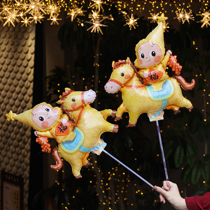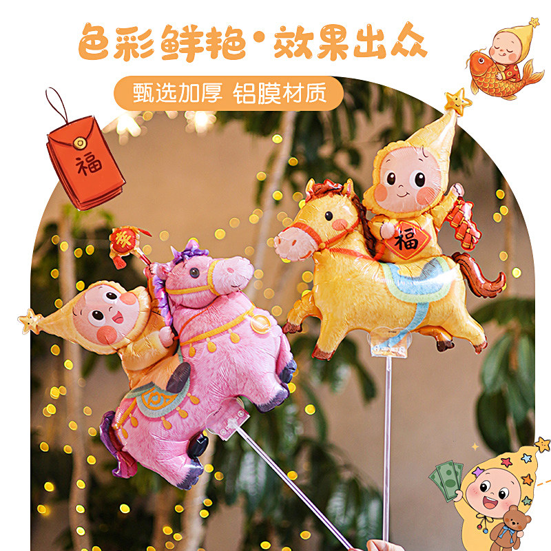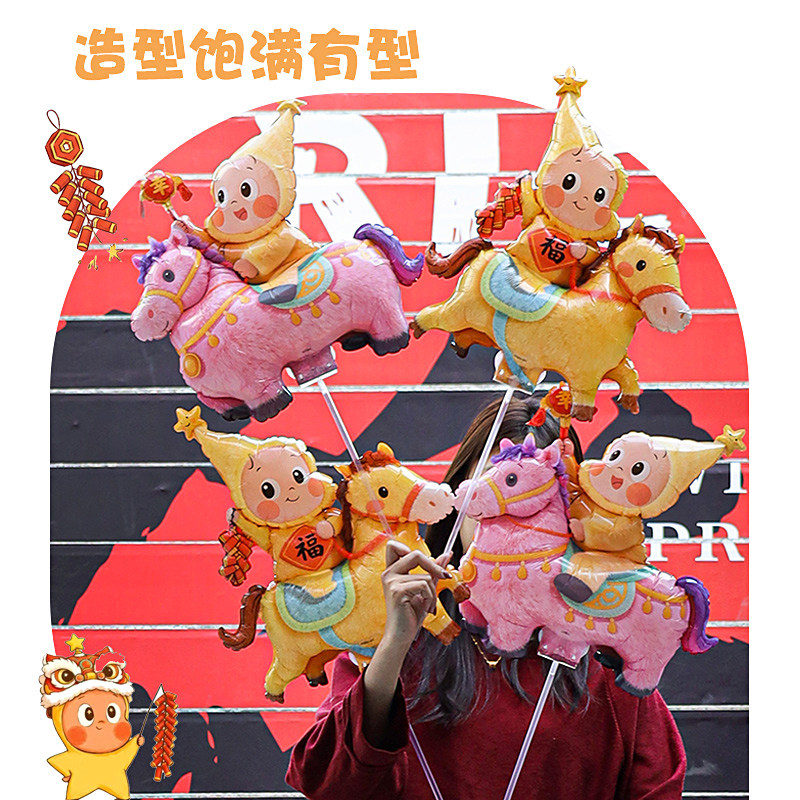 2026马年毛绒星星人新年铝膜气球手持夹片幼儿园活动礼品出摊神器