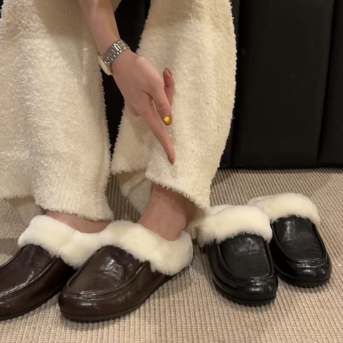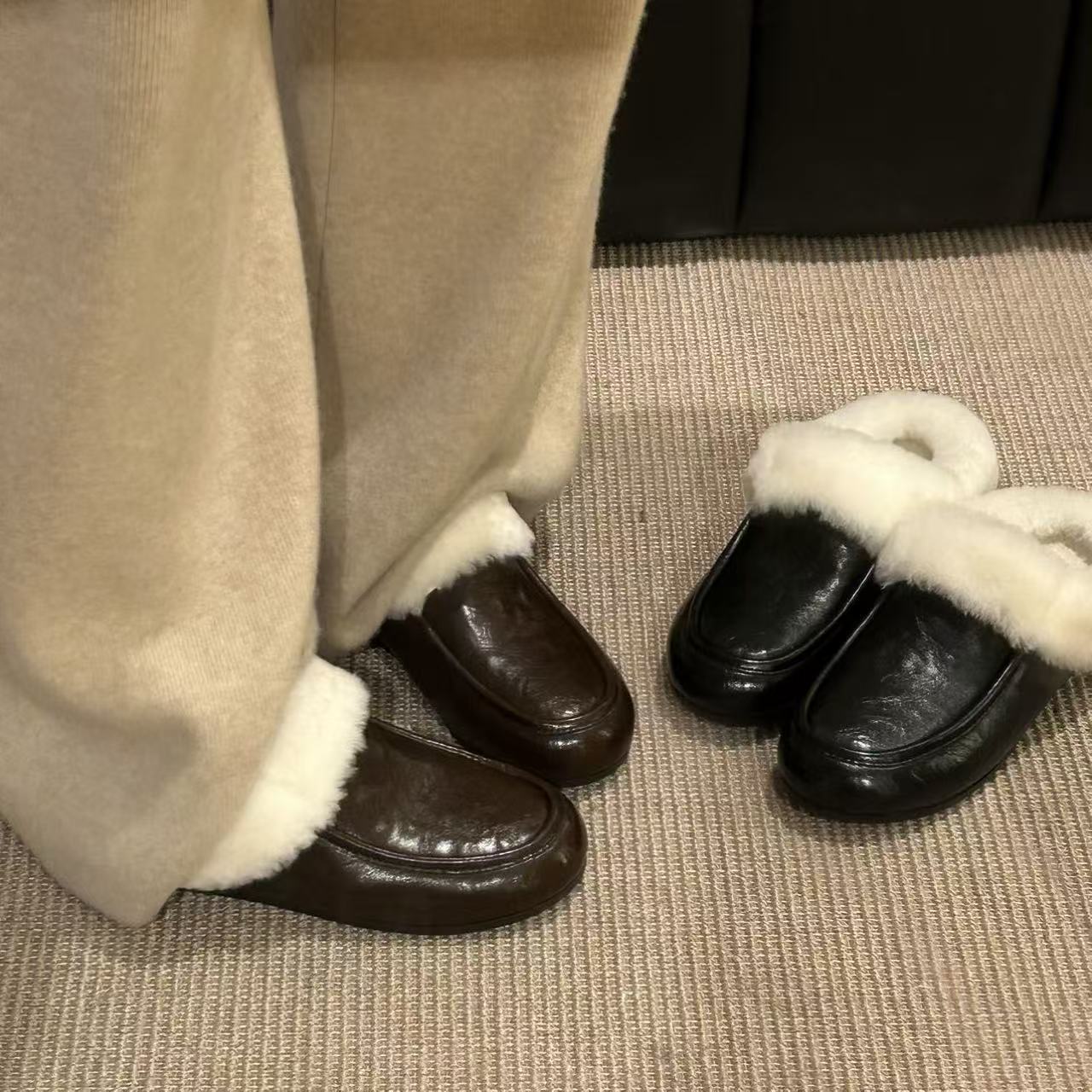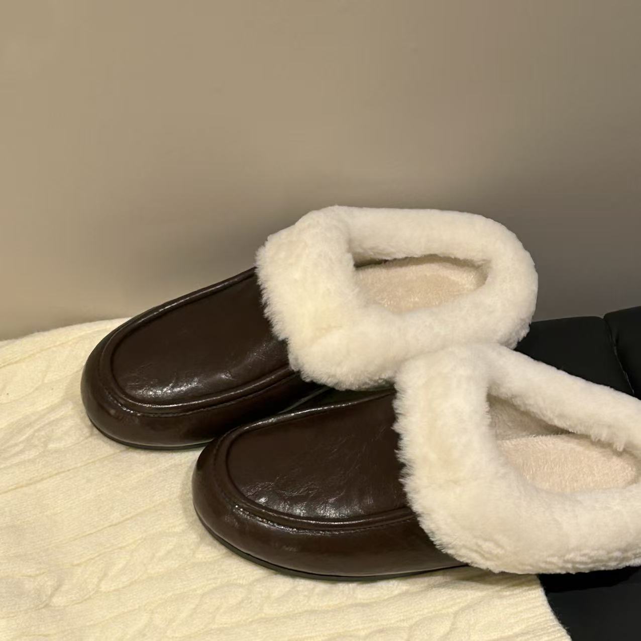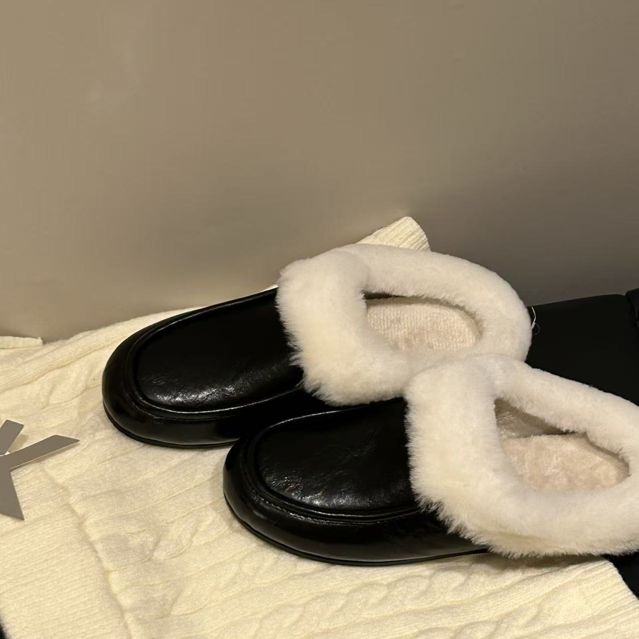 H55女鞋凯利安25冬季新款羊毛休闲包头懒人棉里拖鞋安思丽穆勒鞋