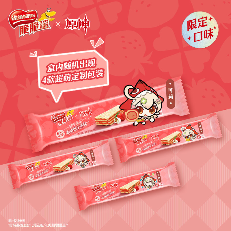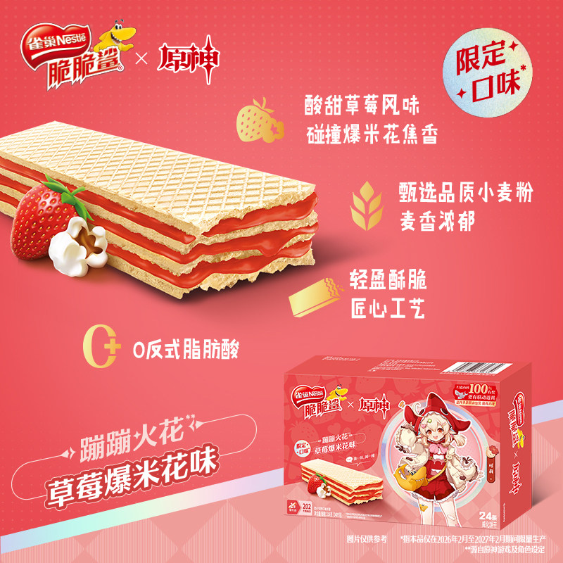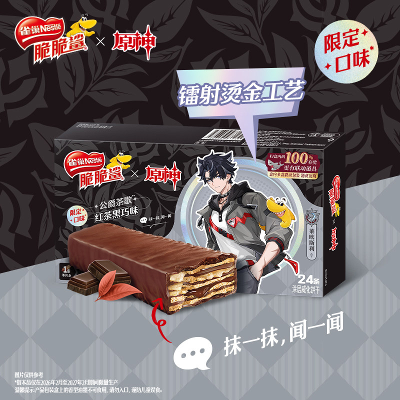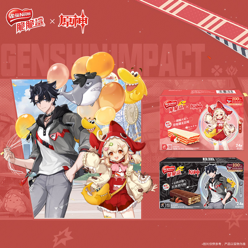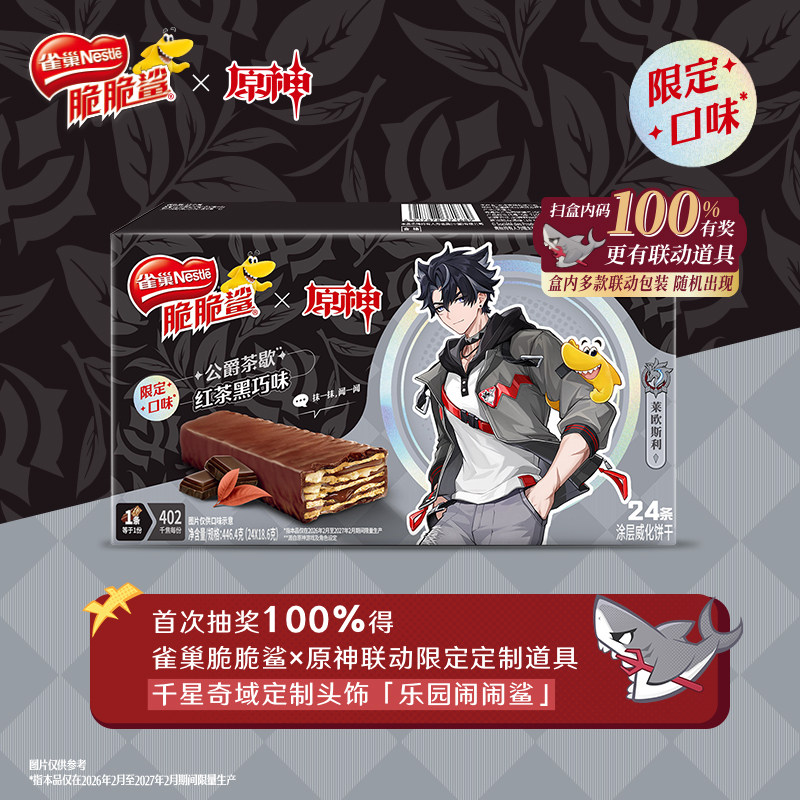 【脆脆鲨×原神联动】红茶黑巧味&草莓爆米花味限定威化饼干零食