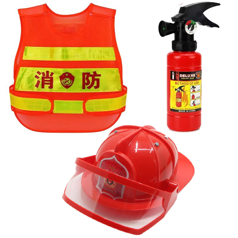 儿童消防员衣服小孩角色扮演服装幼儿园演出服消防帽马甲玩具套装
