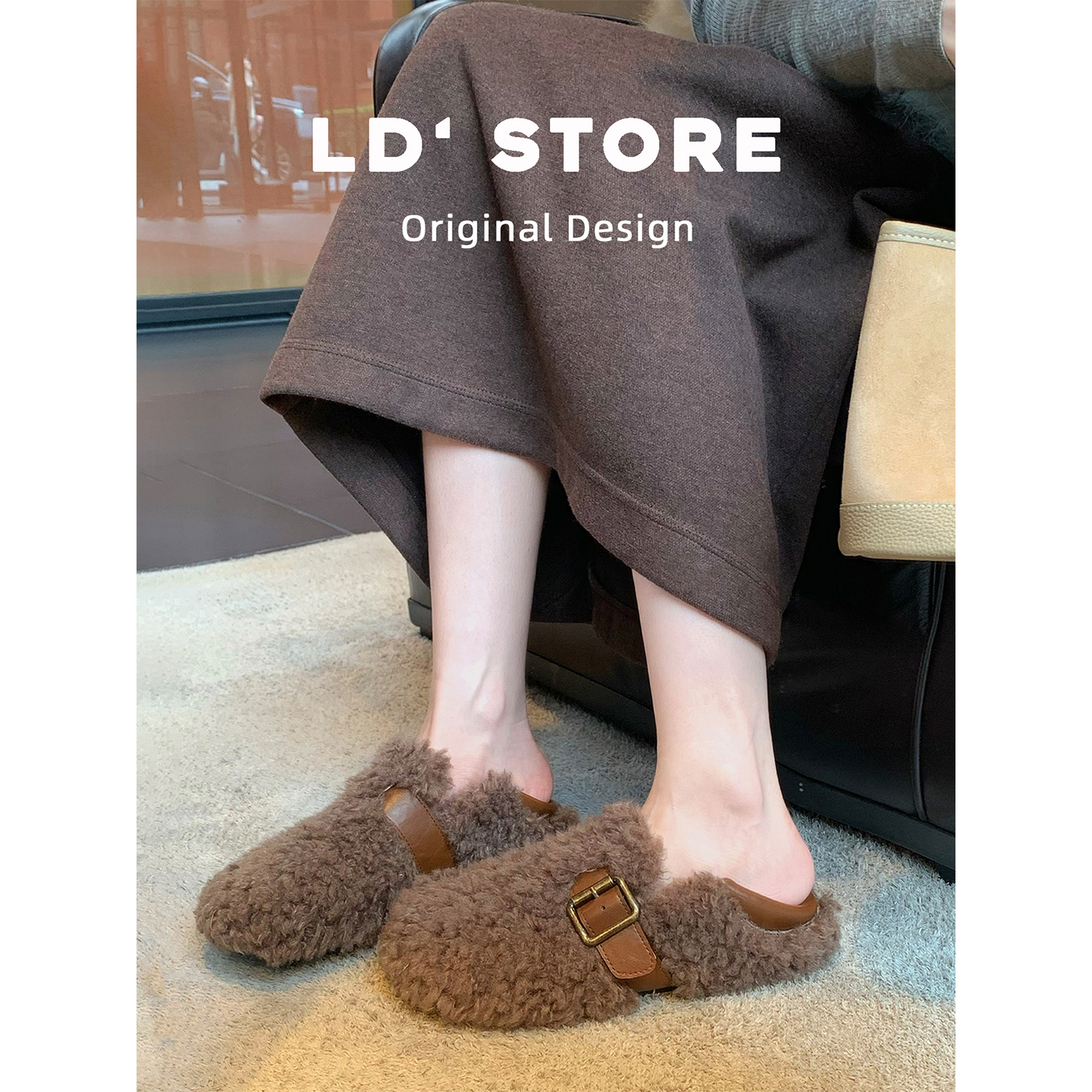 内增高毛毛勃肯鞋女2025冬季新款金属扣带两穿加绒保暖雪地棉鞋子
