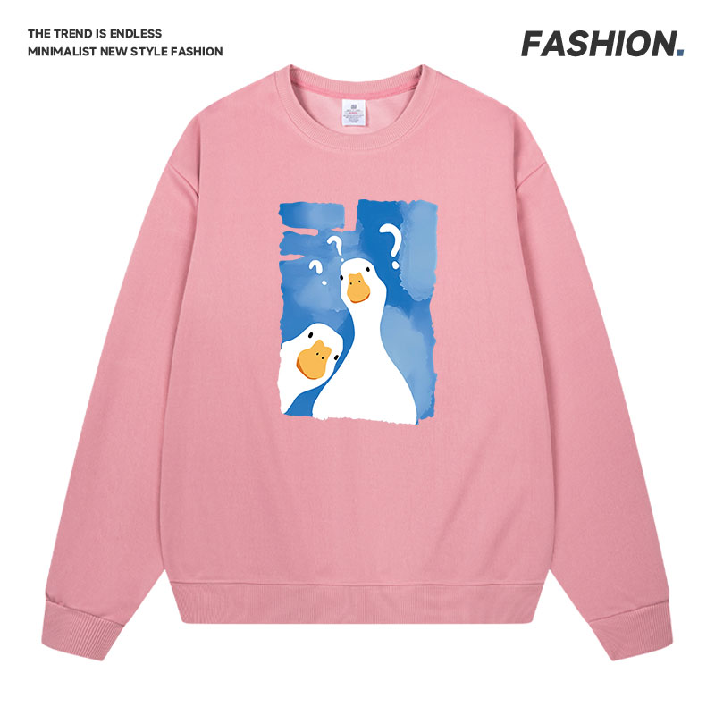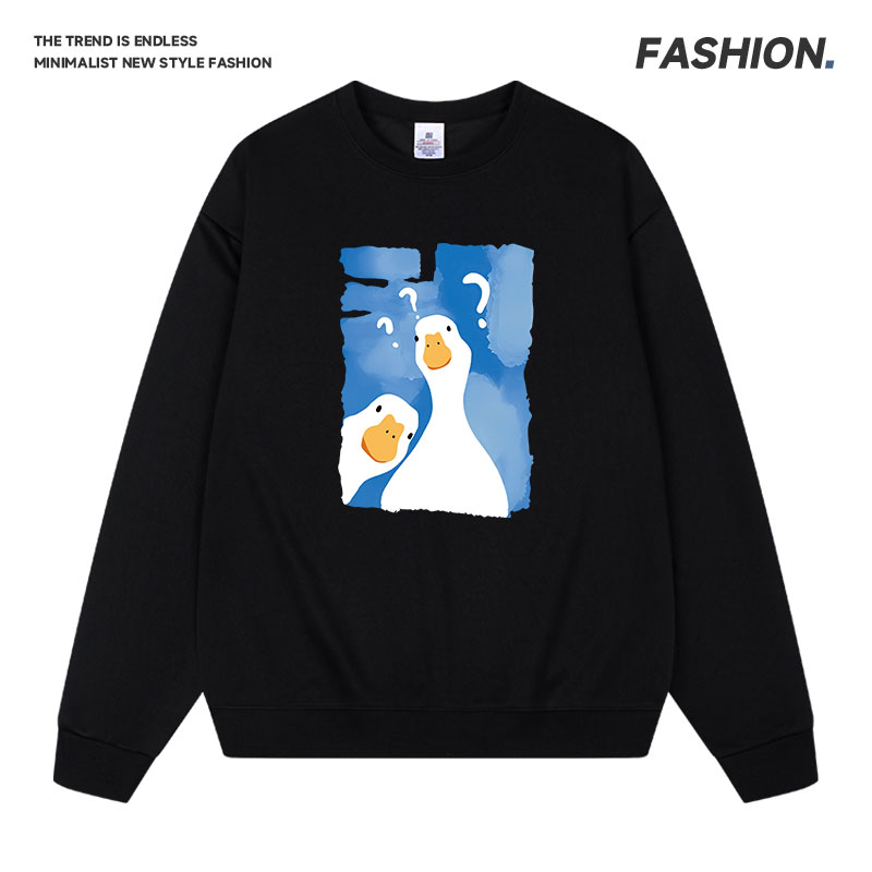 秋冬款运动休闲印花卫衣男女保暖连帽宽松型户外套头上衣