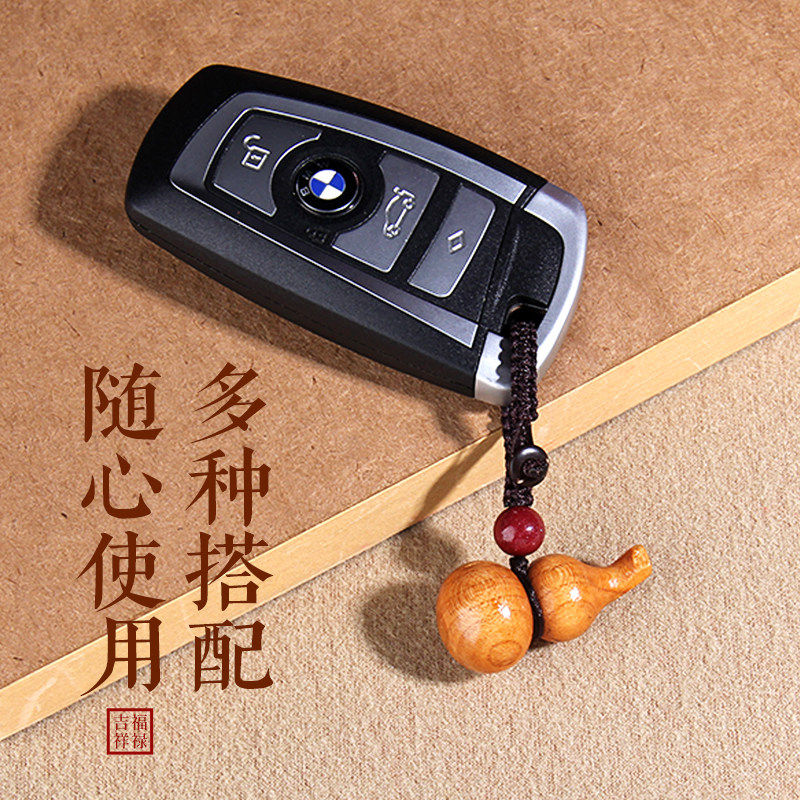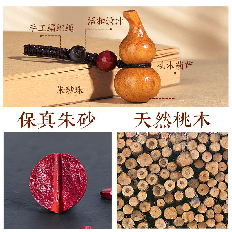 普陀山天然桃木葫芦福禄汽车钥匙扣朱砂挂件手机链随身包挂车挂件