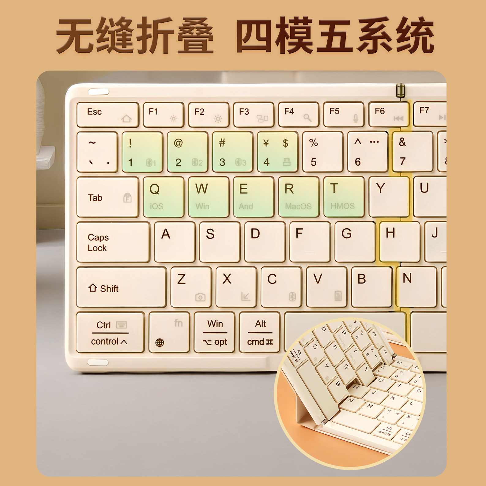 虎克折叠无线键盘蓝牙ipad鼠标套装可充电男女生高颜值办公打字手感好外接手机平板台式电脑笔记本创意便携式