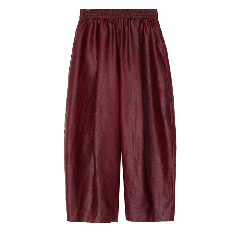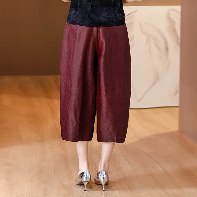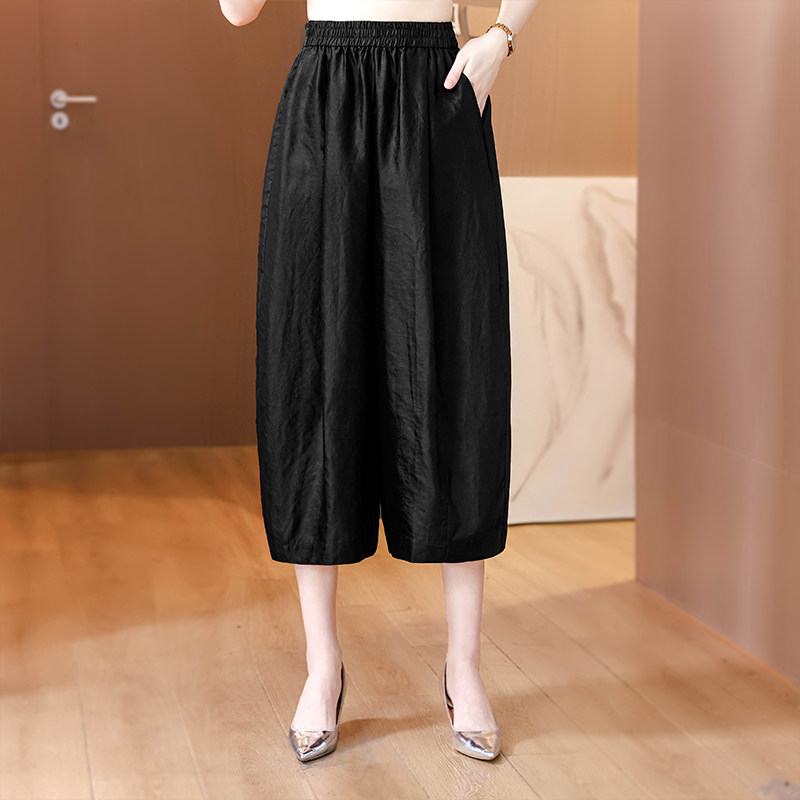 杭州真丝桑蚕丝休闲裤女士2025新款小个子薄款香云纱七分阔腿裤子