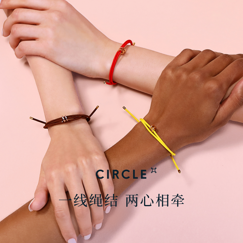 CIRCLE珠宝旋系列9K金编织情侣手链闺蜜手绳本命年红绳磁吸手绳