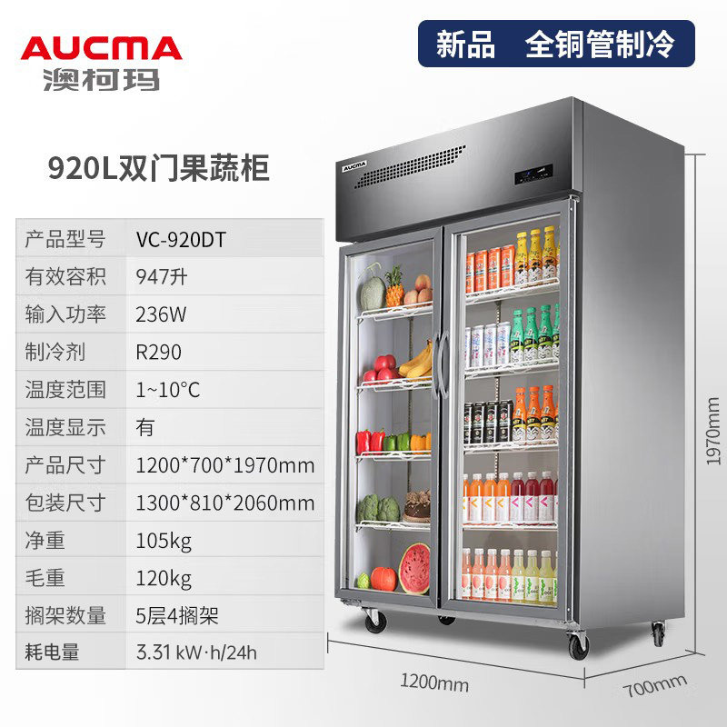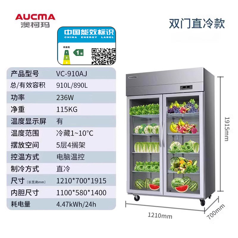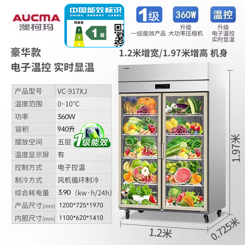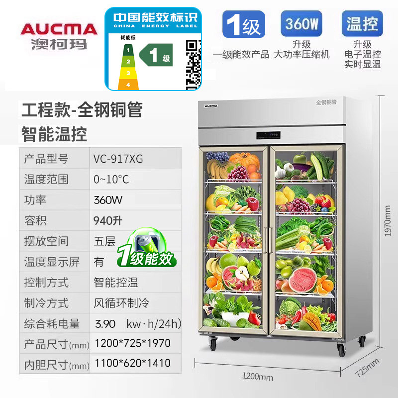 澳柯玛厨房冰箱冷藏立式冰柜麻辣烫展示柜家商用保鲜点菜柜917XJ