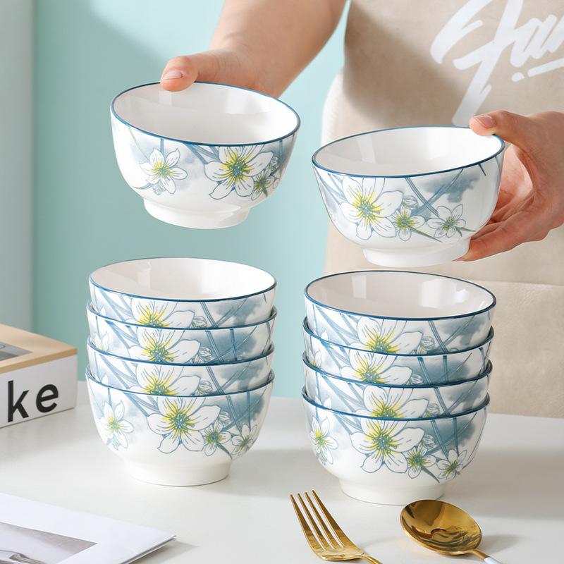 水仙花米饭碗家庭装碗家用高颜值吃饭碗安全高温釉下彩加厚防烫