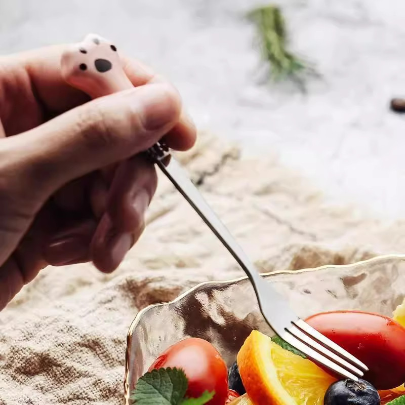 不锈钢水果叉可爱猫爪甜品叉创意蛋糕叉子月饼叉家用高档水果叉签