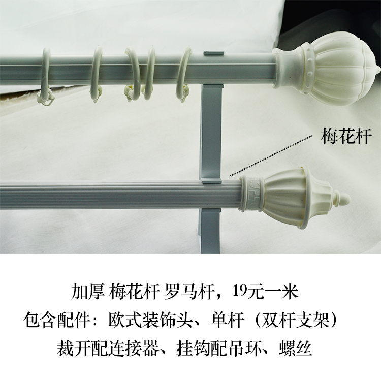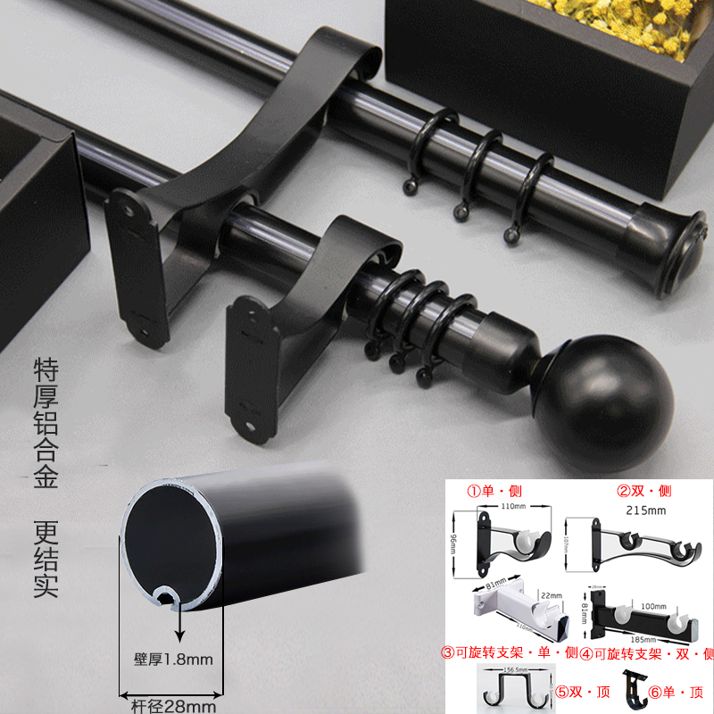 加厚铝合金罗马杆黑白色静音单杆消音双杆原木风轻奢复古窗帘配件