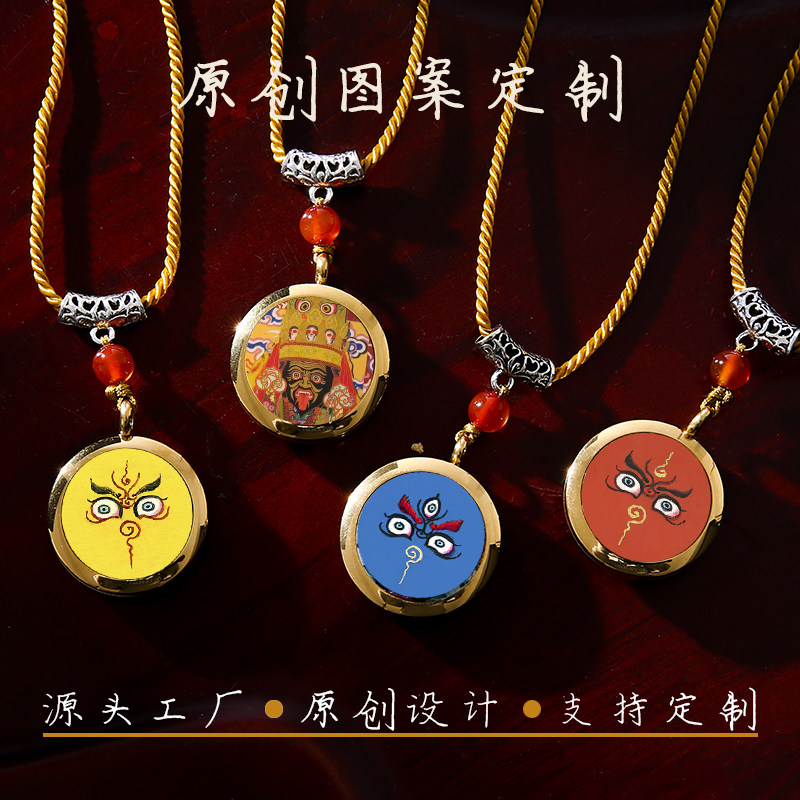 金色扎基拉母黄财神法眼五路财神吊坠 圆形钛钢楞严咒挂件 可定制