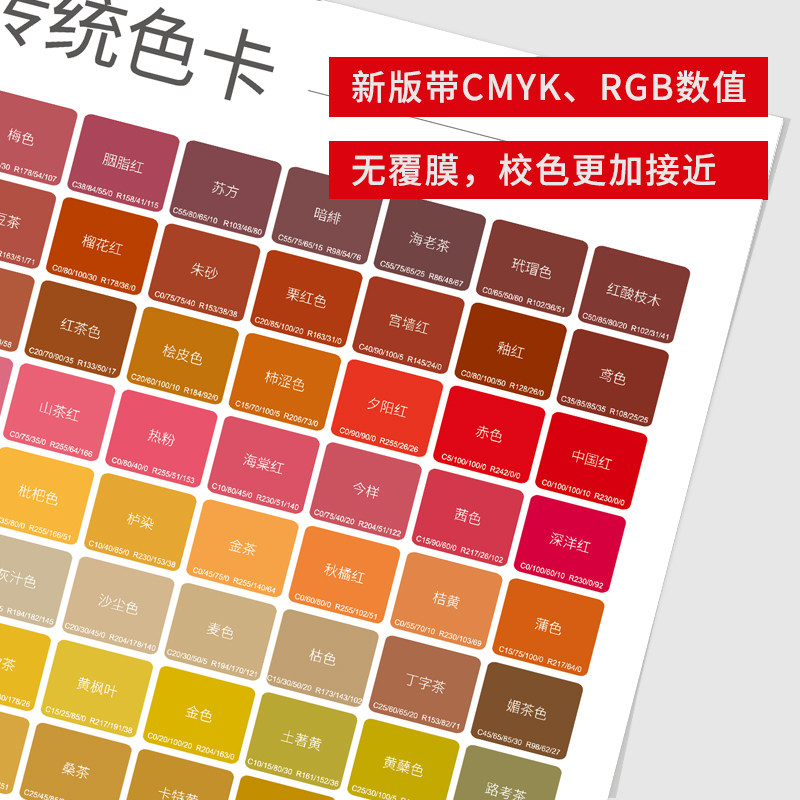 中式色卡国标色卡本样板卡cmyk印刷色卡调色海报四色rgb配色手册色块广告设计服装家具油漆涂料国际标准通用