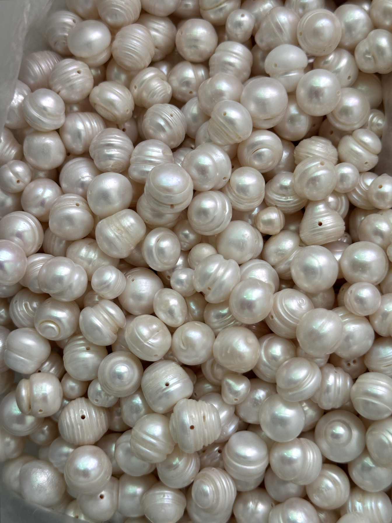 老蚌珠天然大无核淡水珍珠10-11-12mm椭圆螺纹珍珠DIY有孔散珠