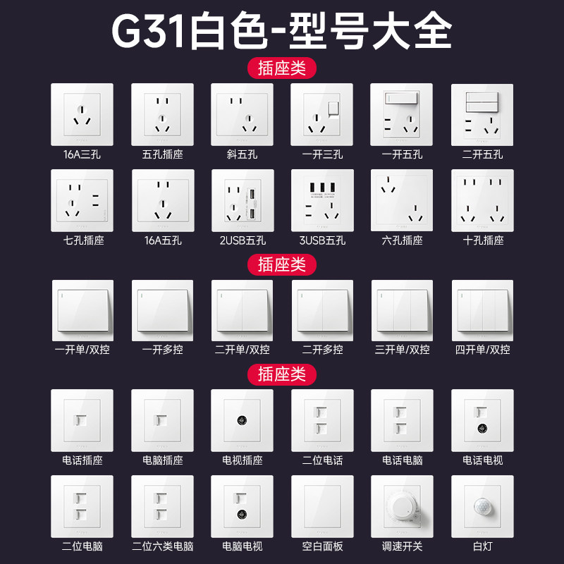 公牛开关面板电灯开关家用单开一开单双控双联三四位床头开关按钮