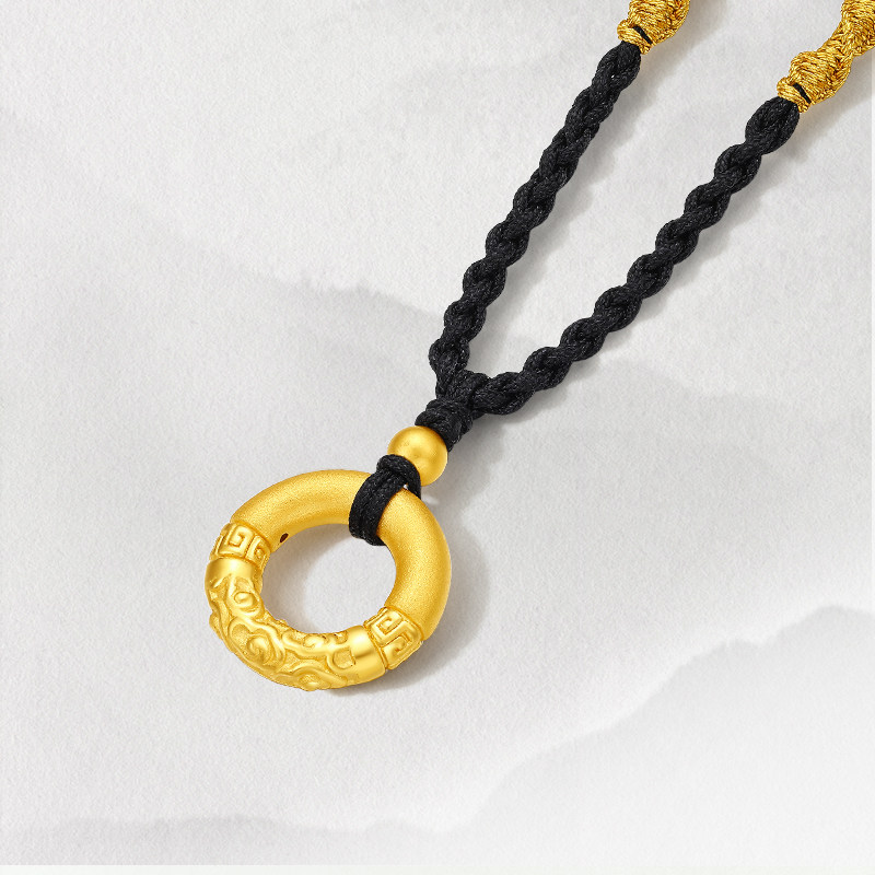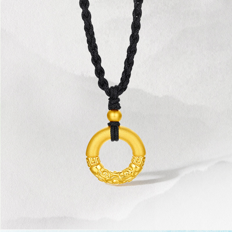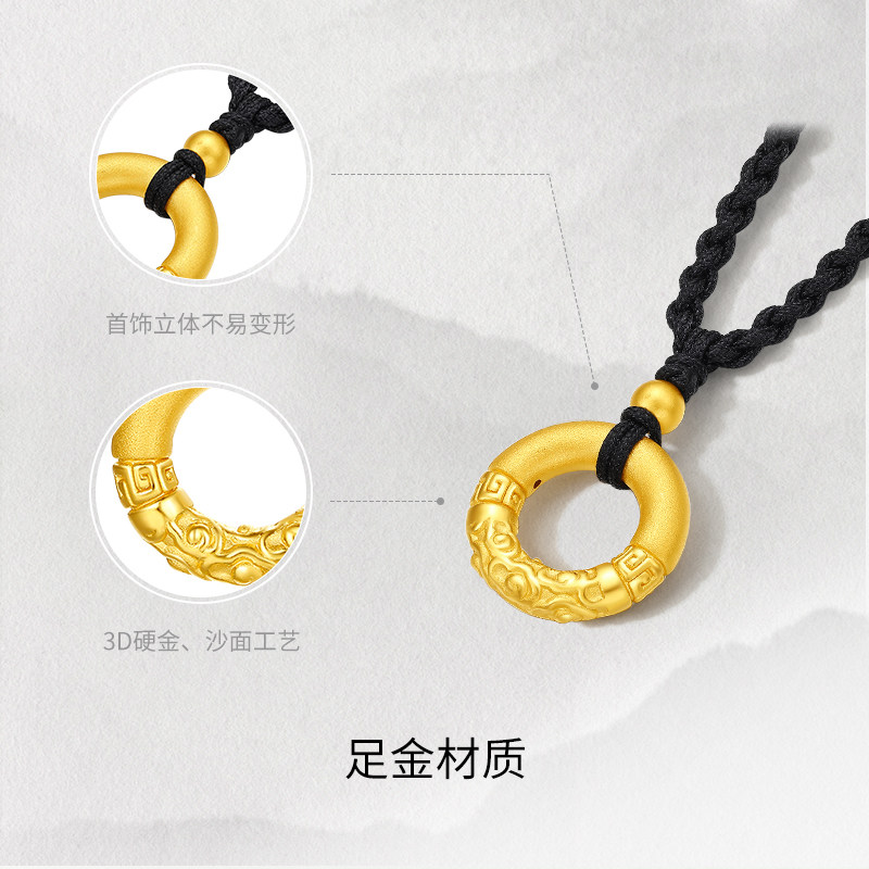 周六福黄金项链女款祥云乾坤圈平安扣定价颈饰3d硬金吊坠官方礼物
