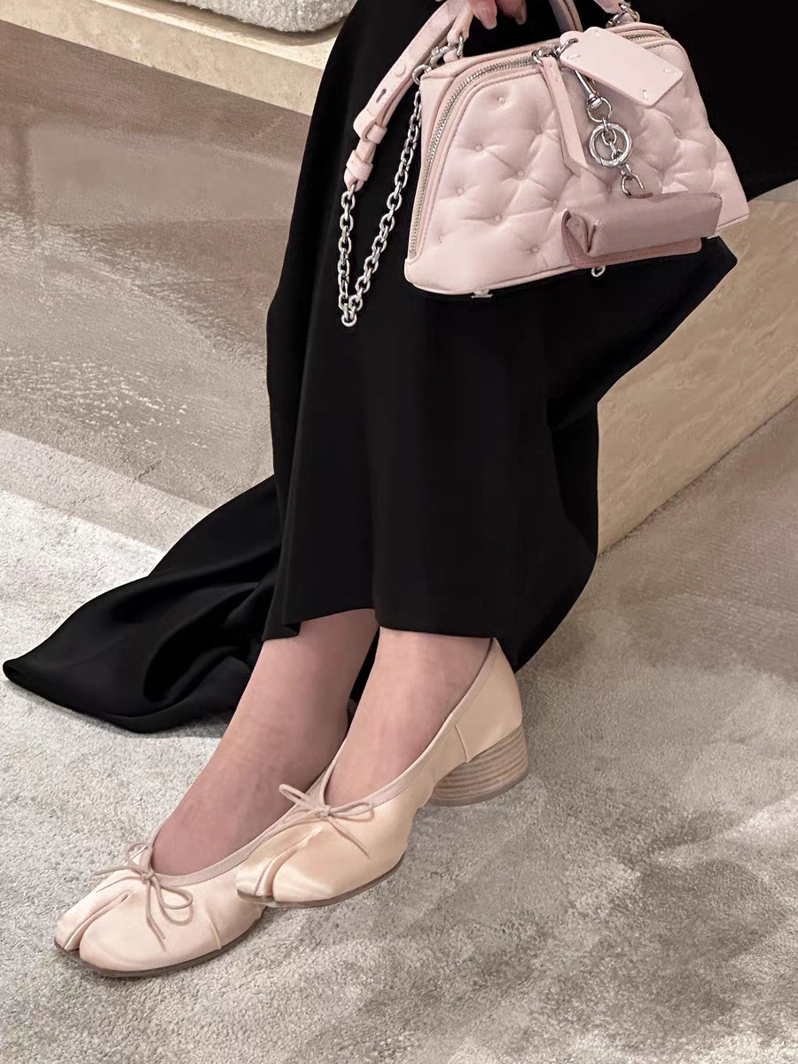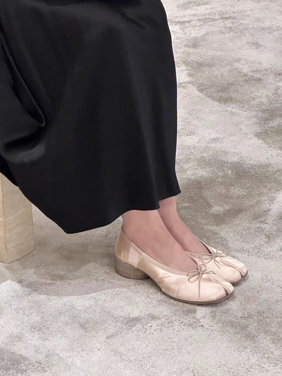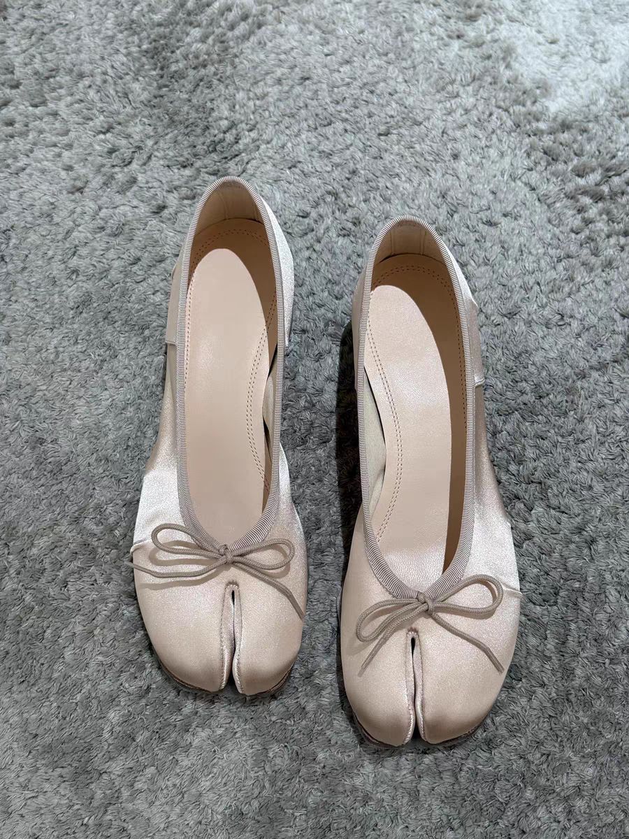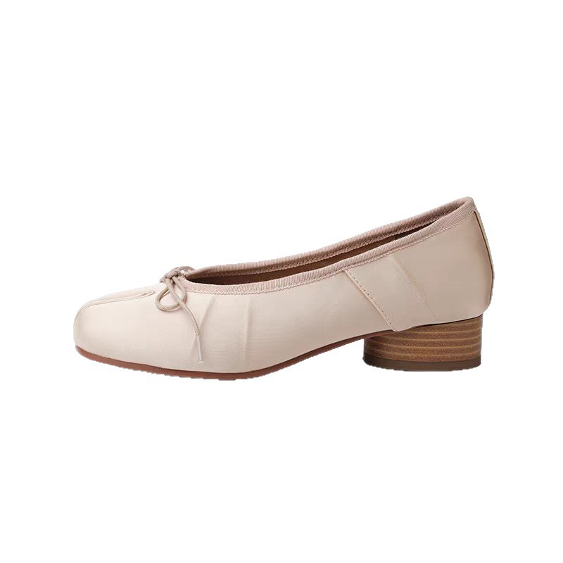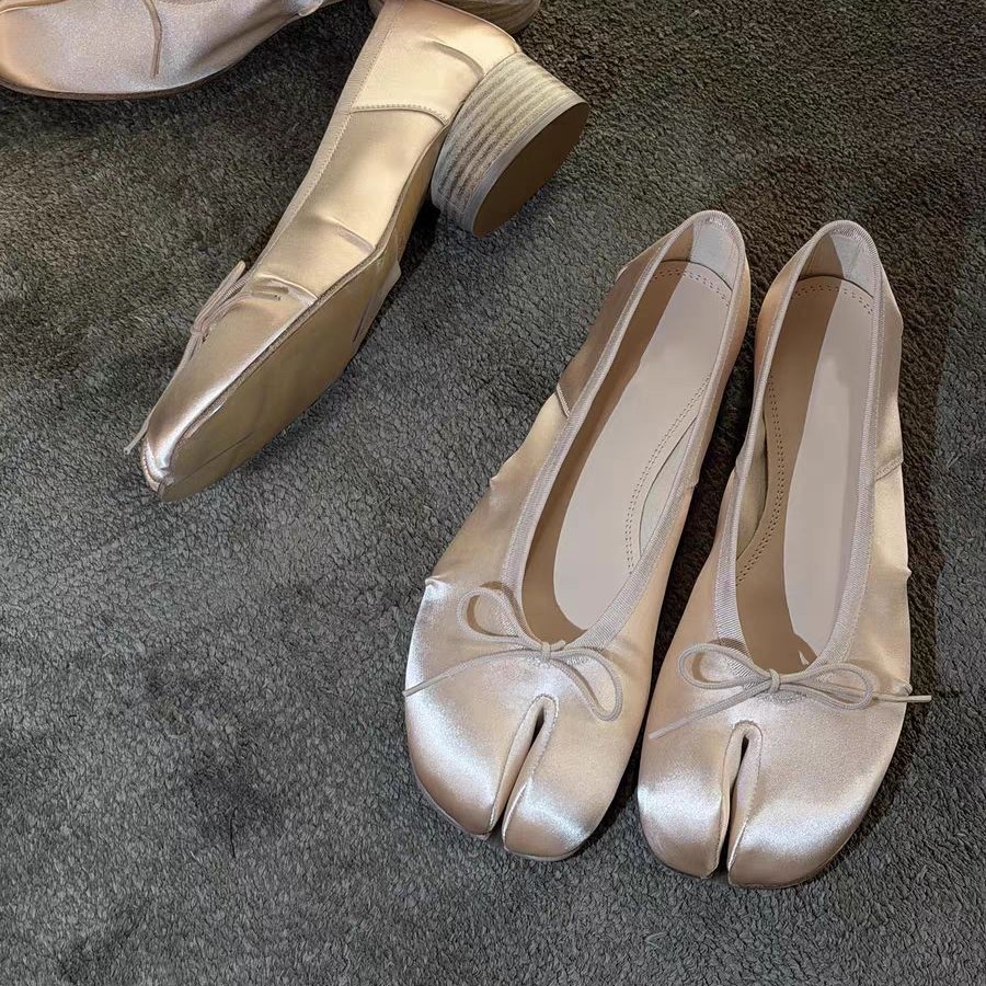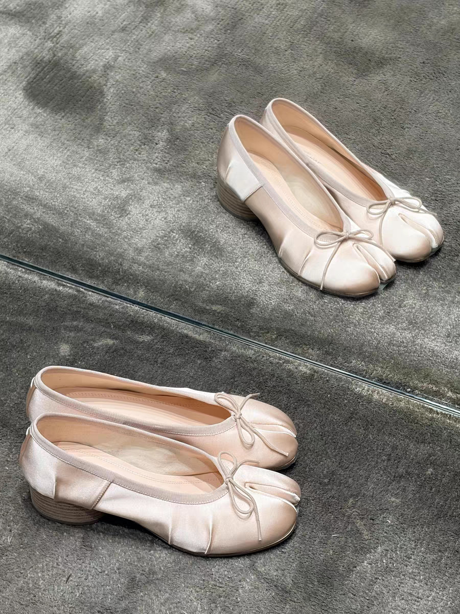 1688现货版~2026春季新款绸缎圆头分趾猪蹄平底玛丽珍单鞋女褶皱芭蕾