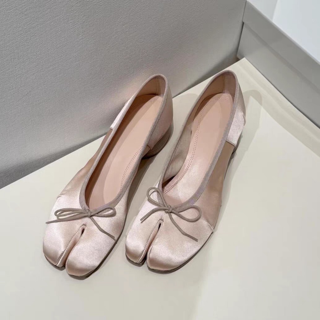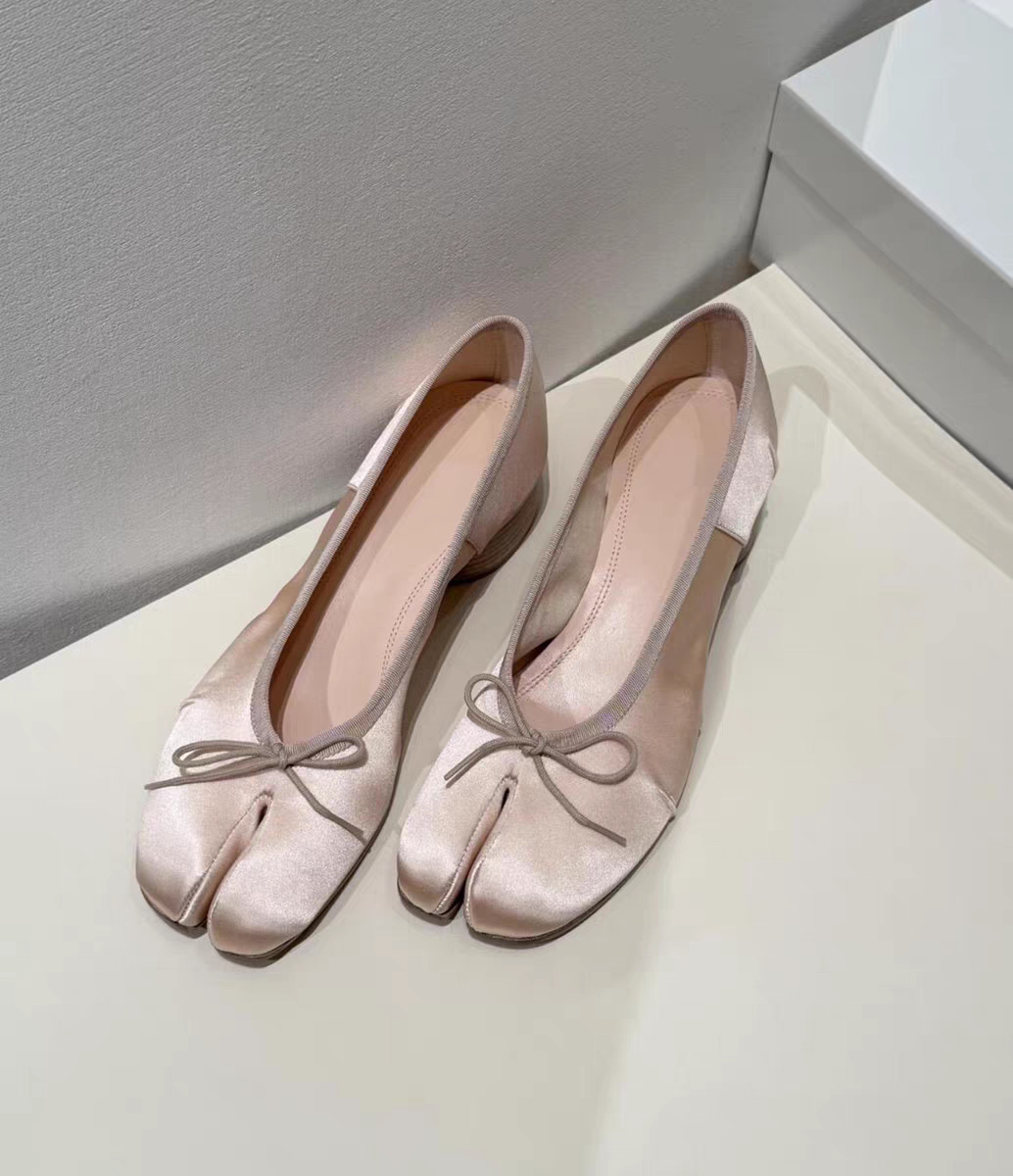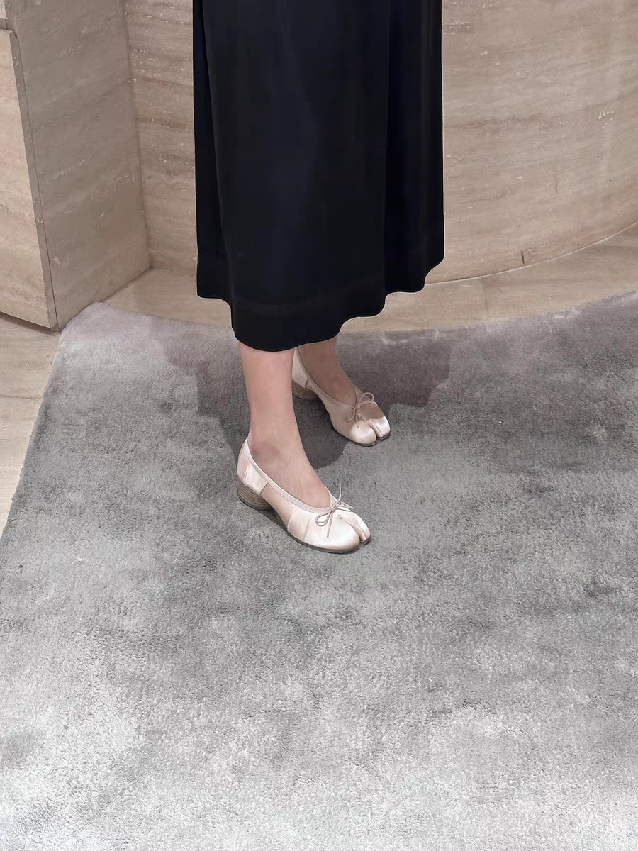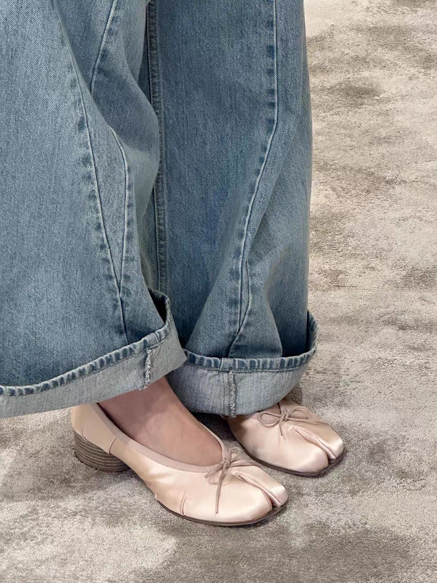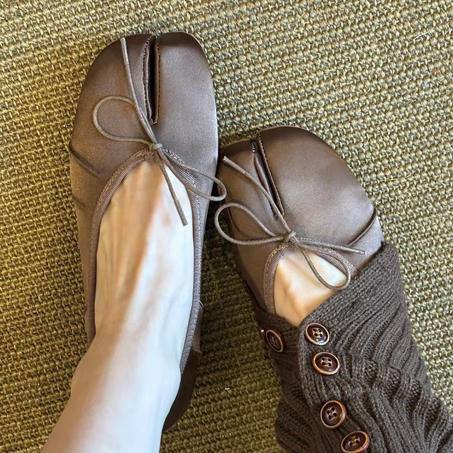 1688现货版~2026春季新款绸缎圆头分趾猪蹄平底玛丽珍单鞋女褶皱芭蕾