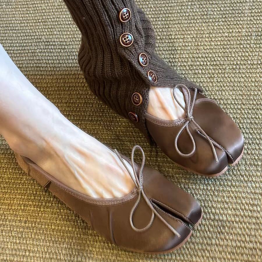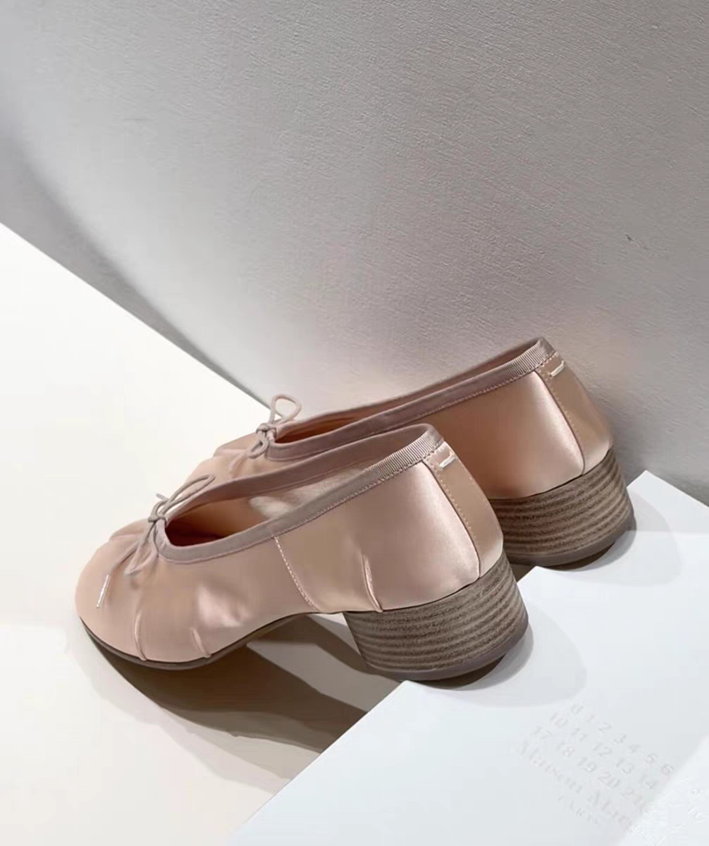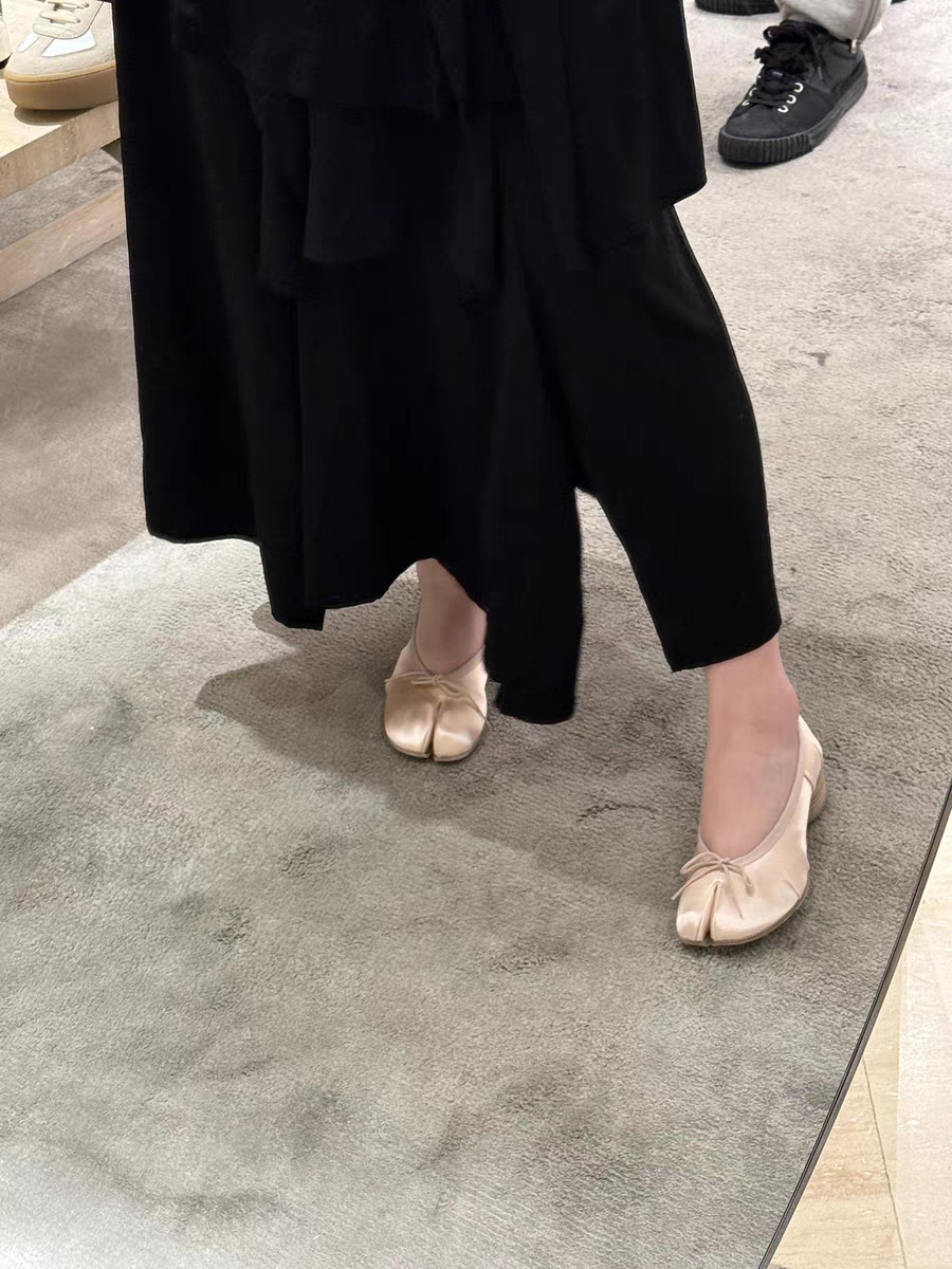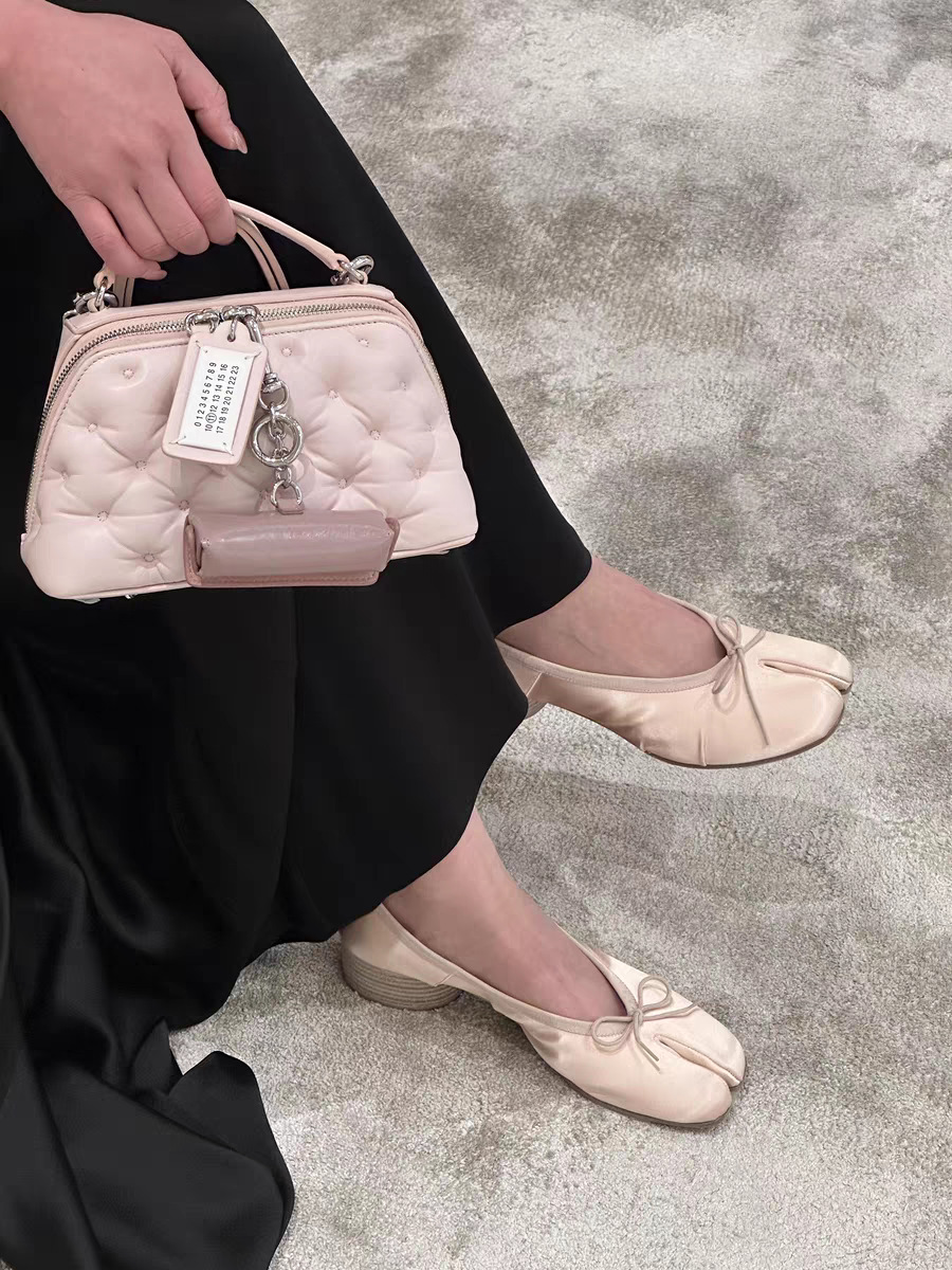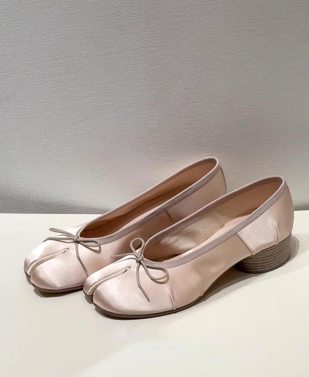 1688现货版~2026春季新款绸缎圆头分趾猪蹄平底玛丽珍单鞋女褶皱芭蕾
