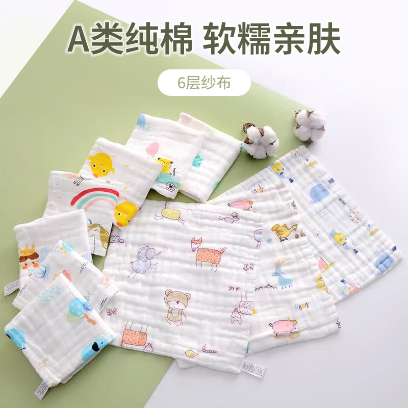 1688定制纯棉小方巾六层高密纱布巾新生儿童宝宝口水巾婴幼儿洗脸毛巾