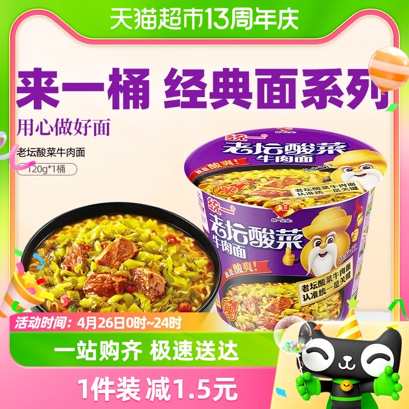 淘宝统一方便面来一桶老坛酸菜牛肉面120g*1桶新老包装更换 随机发货