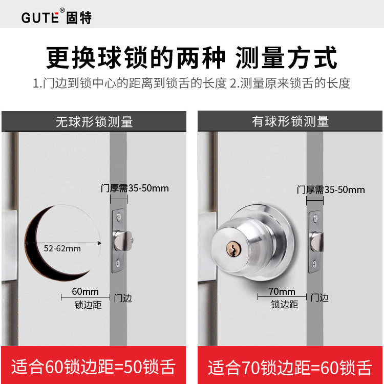 淘宝固特不锈钢门把手圆形圆头木门门锁老式家用卧室锁舌通用型球形锁