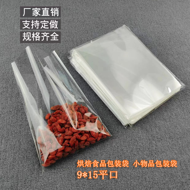 淘宝烘焙食品面包袋平口袋包装袋5丝9*15透明袋子opp塑料袋棒棒糖袋