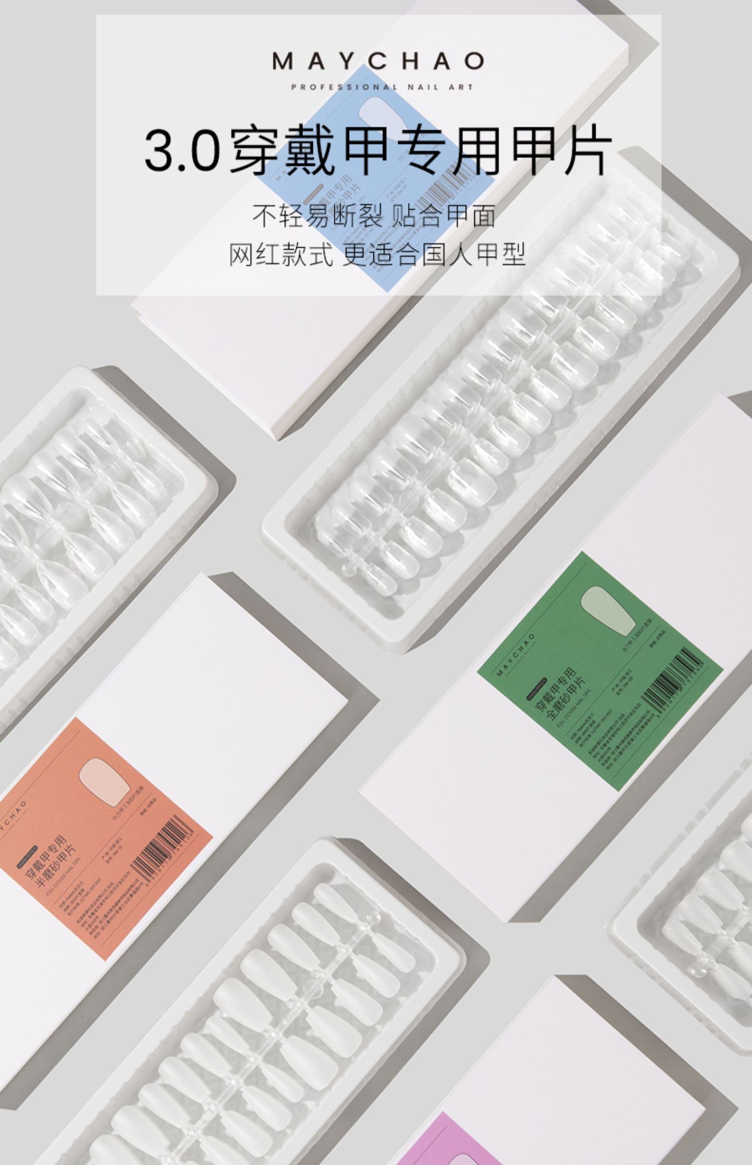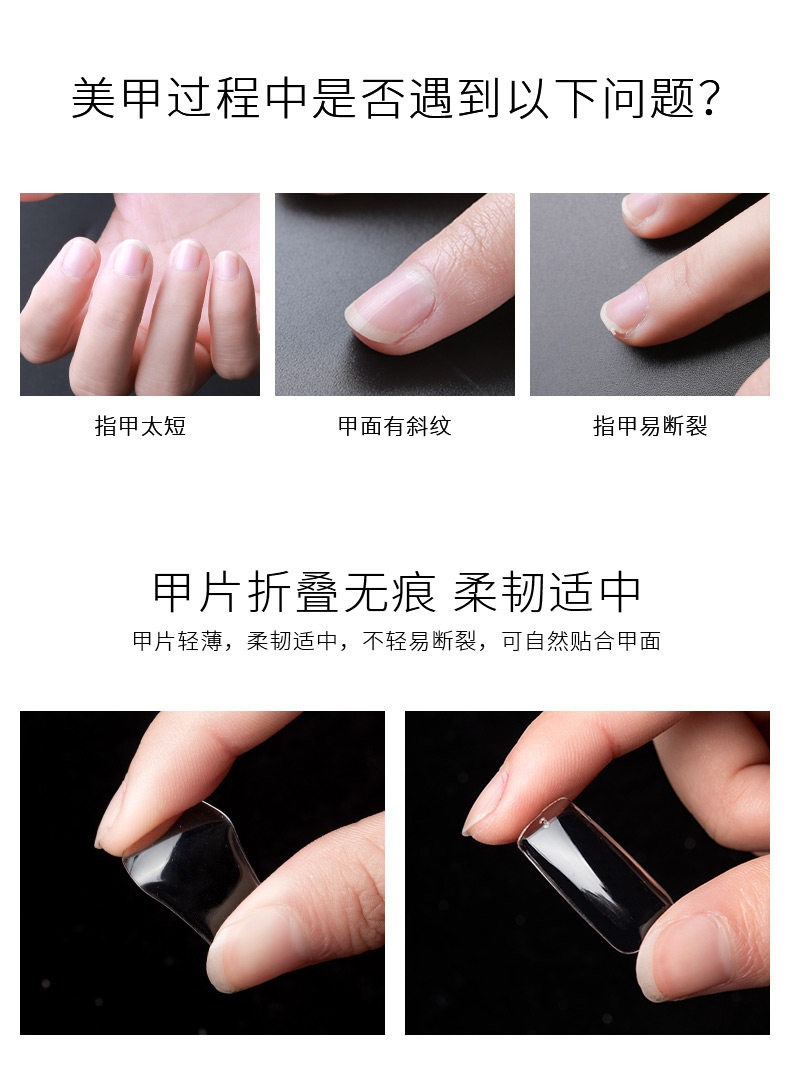 淘宝甲片美甲店专用透明超薄无痕半贴美甲延长打版练习黏合胶穿戴甲片