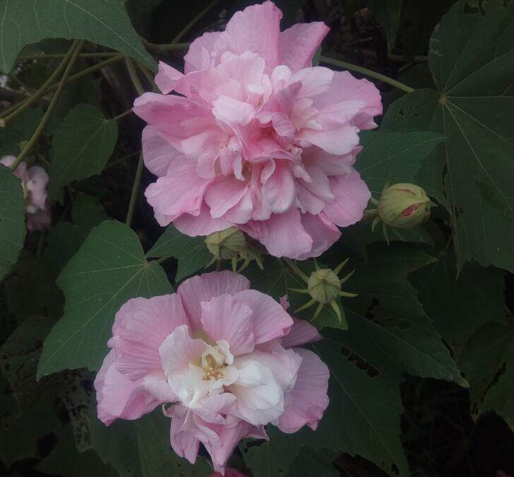 淘宝矮生盆栽,粉红重瓣木芙蓉花,花多, 一株20厘米单枝
